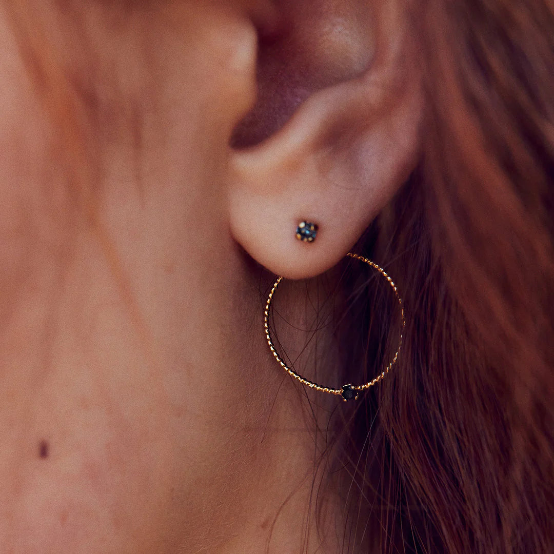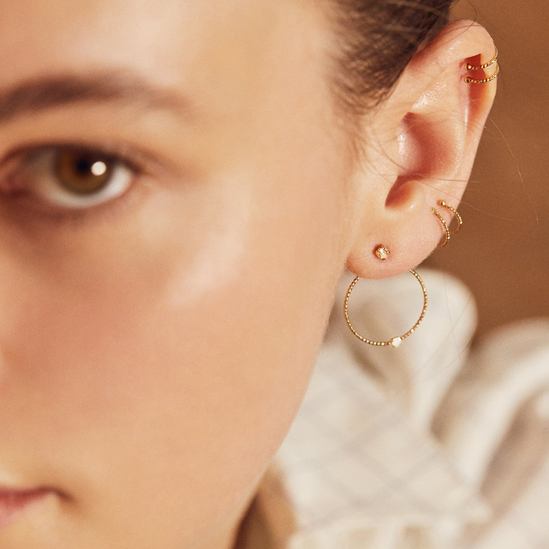 Paire de boucles d'oreille créoles dorées à l'or fin avec strass Swarovski Cristal.