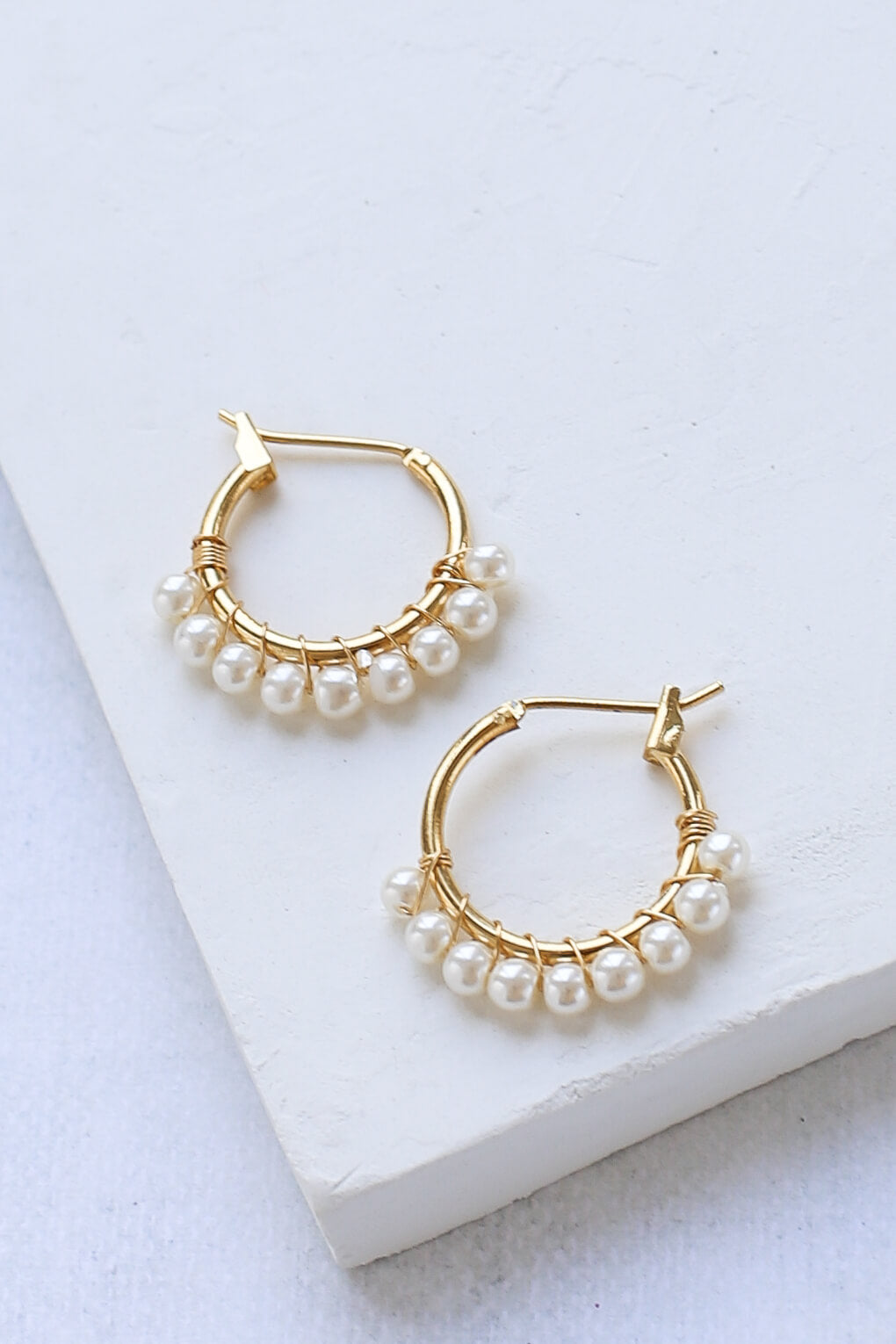 Belles boucles d'oreilles créoles ornées de neuf perles de verre.