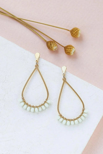 Boucles d'oreilles Sahara: une paire de boucles d'oreilles délicates et charmantes composées d'une goutte de forme creuse décorée de perles de verre, entrelacées à la main.