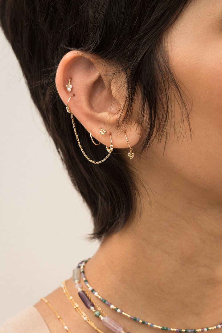 Cette boucle d'oreille double donne l'impression d'avoir 2 trous mais elle ne nécessite qu'un trou.