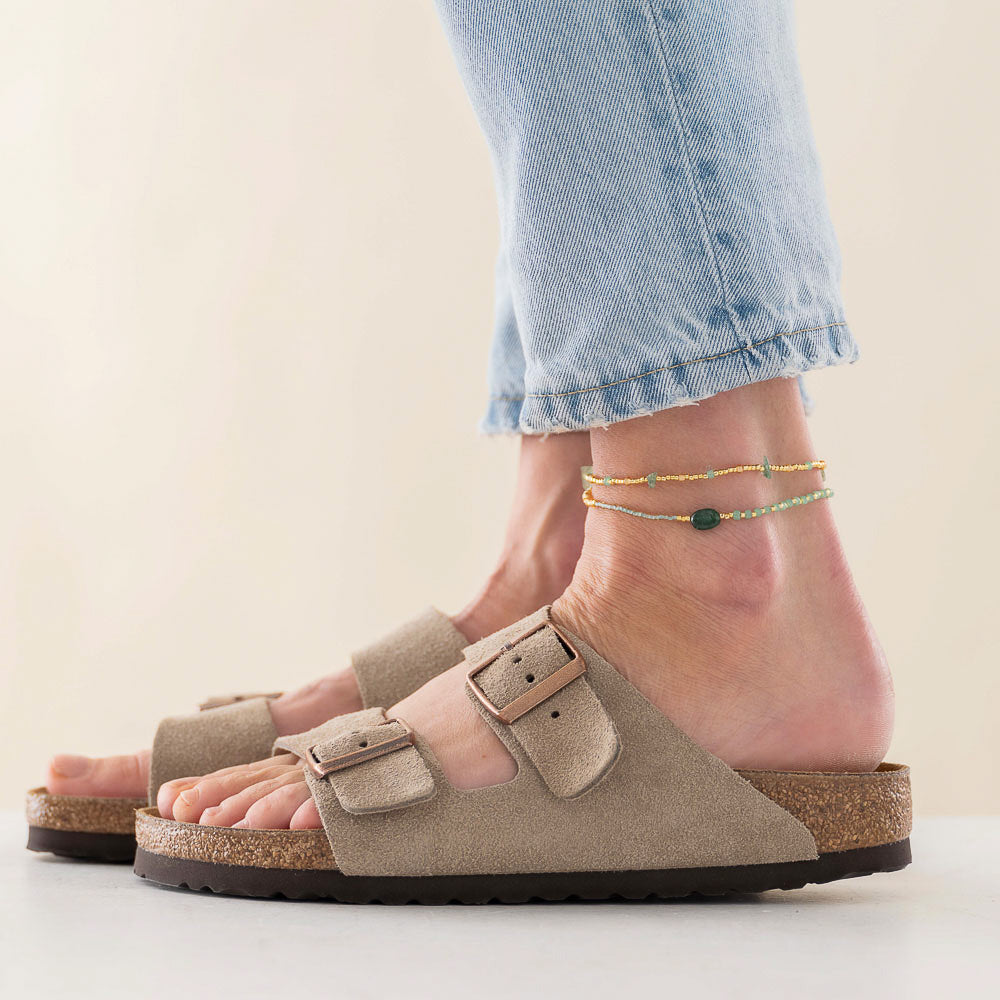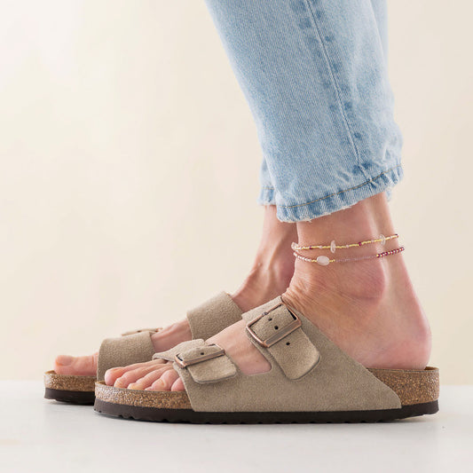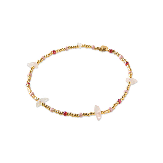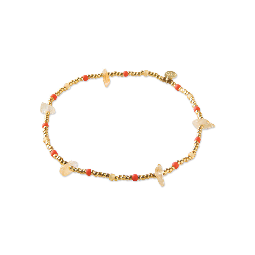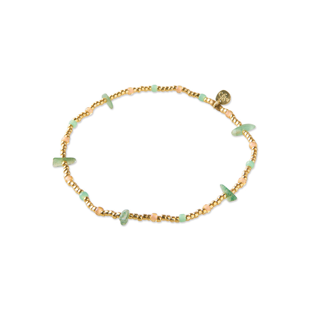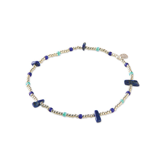 Ce bracelet de cheville Margot, fait main, associe des perles de verre et des petites pierres semi-précieuses brutes. Monté sur un élastique, il s’adapte facilement à votre cheville. Portez-le pour partir à l’aventure l’esprit libre, suivre votre propre chemin et découvrir le monde avec joie.