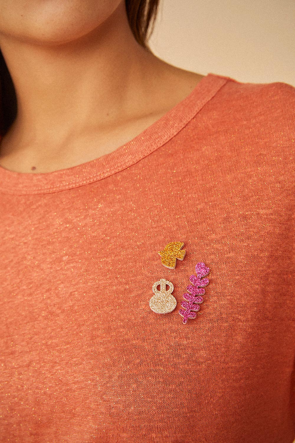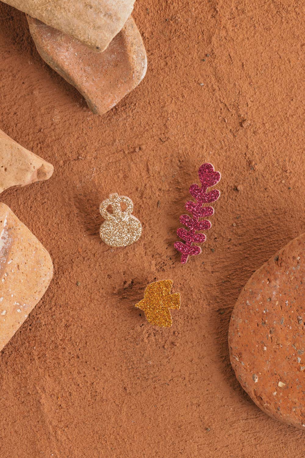 Graphique et pailleté, cet élégant trio de broches ne vous laissera pas indifférente.