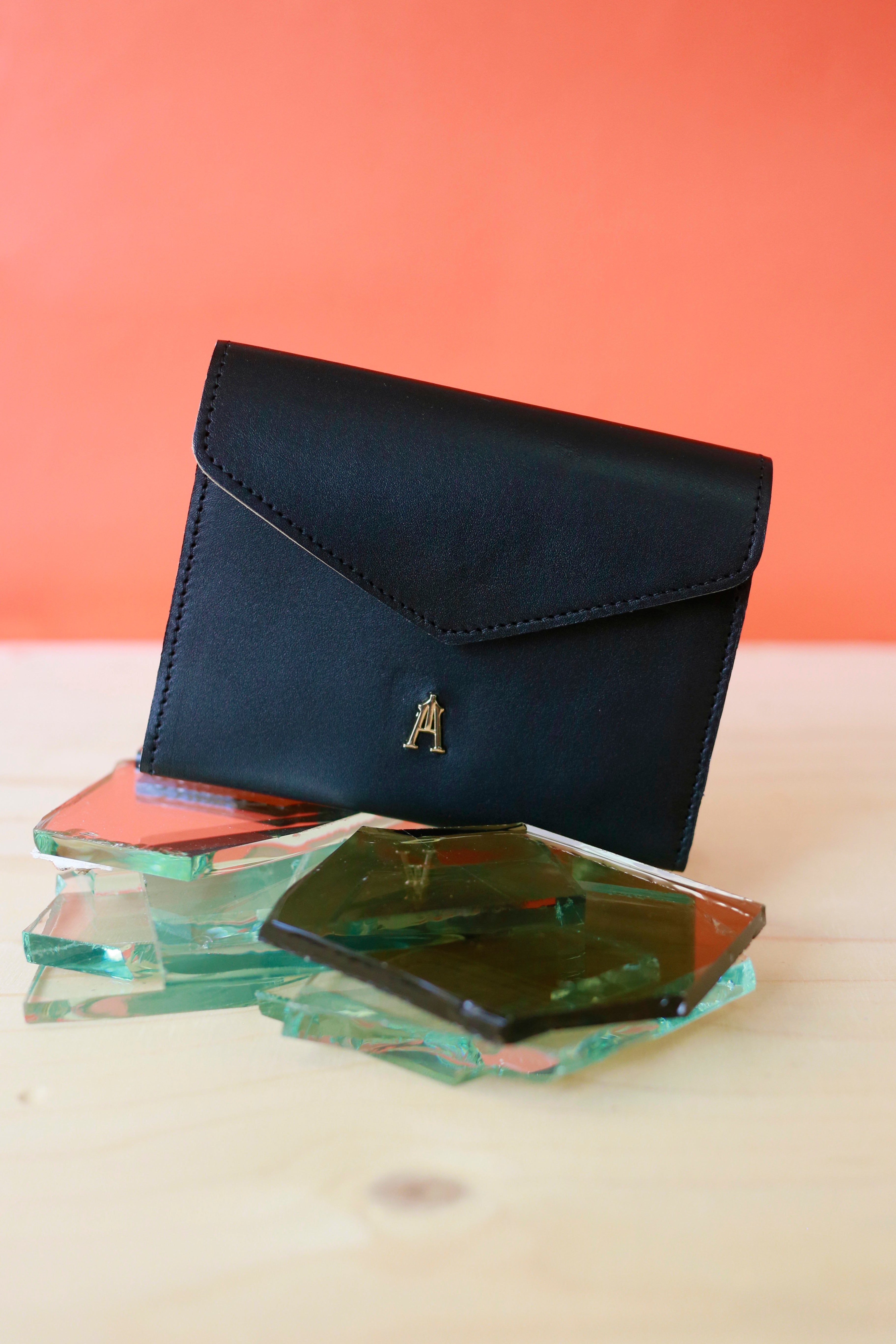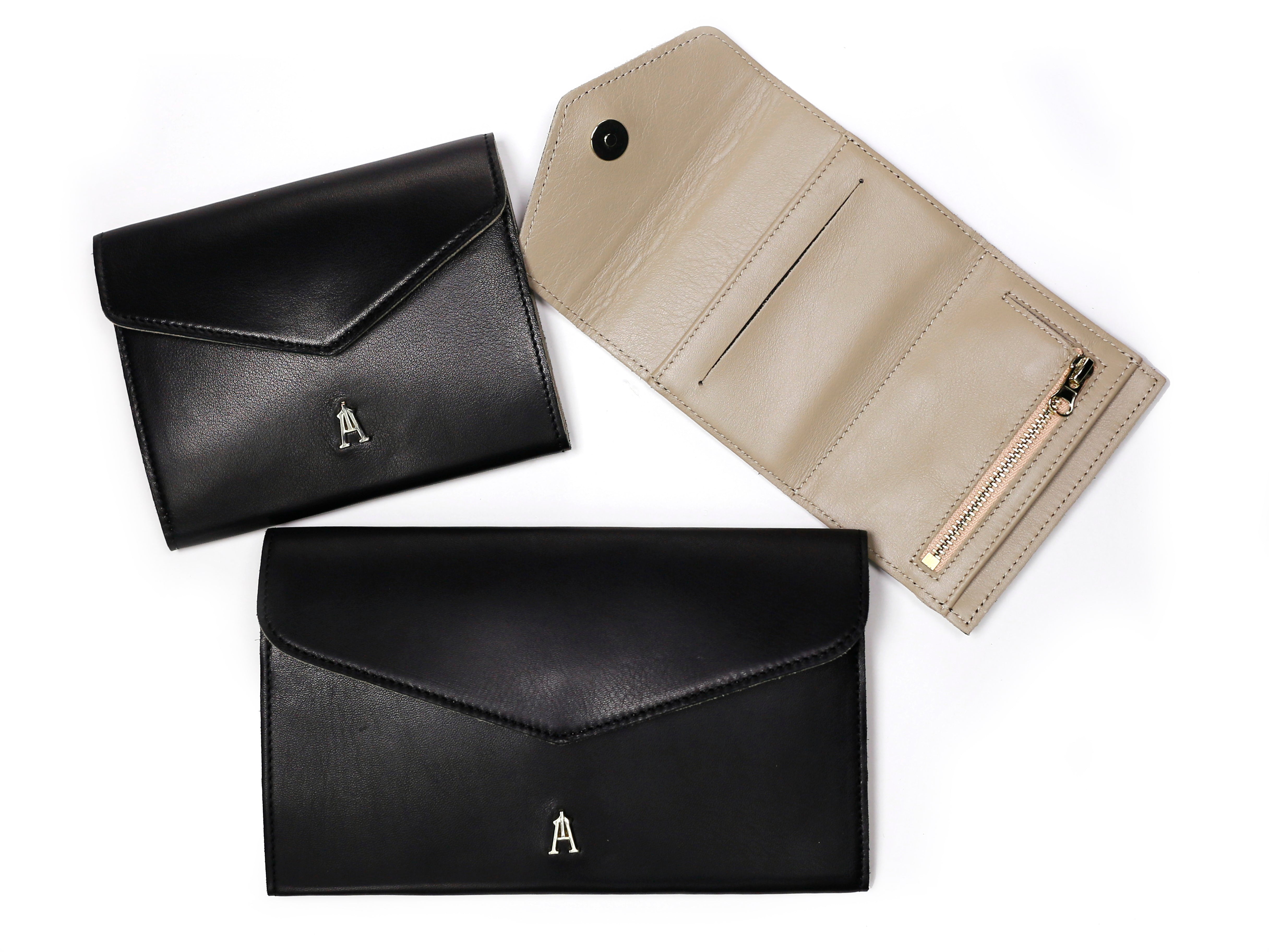 Le Pliage est un portefeuille en cuir de vachette noir, doublé en cuir de vachette beige.