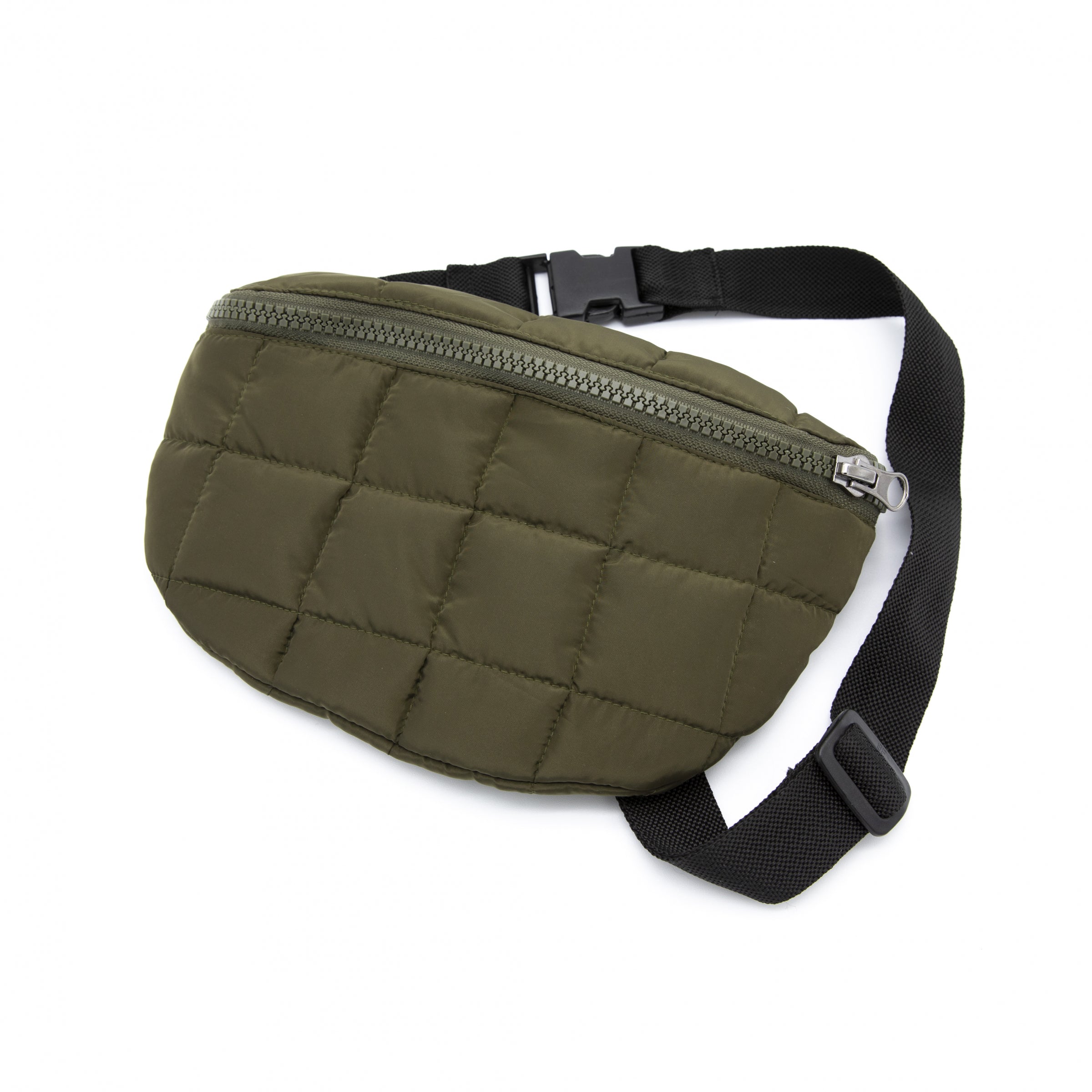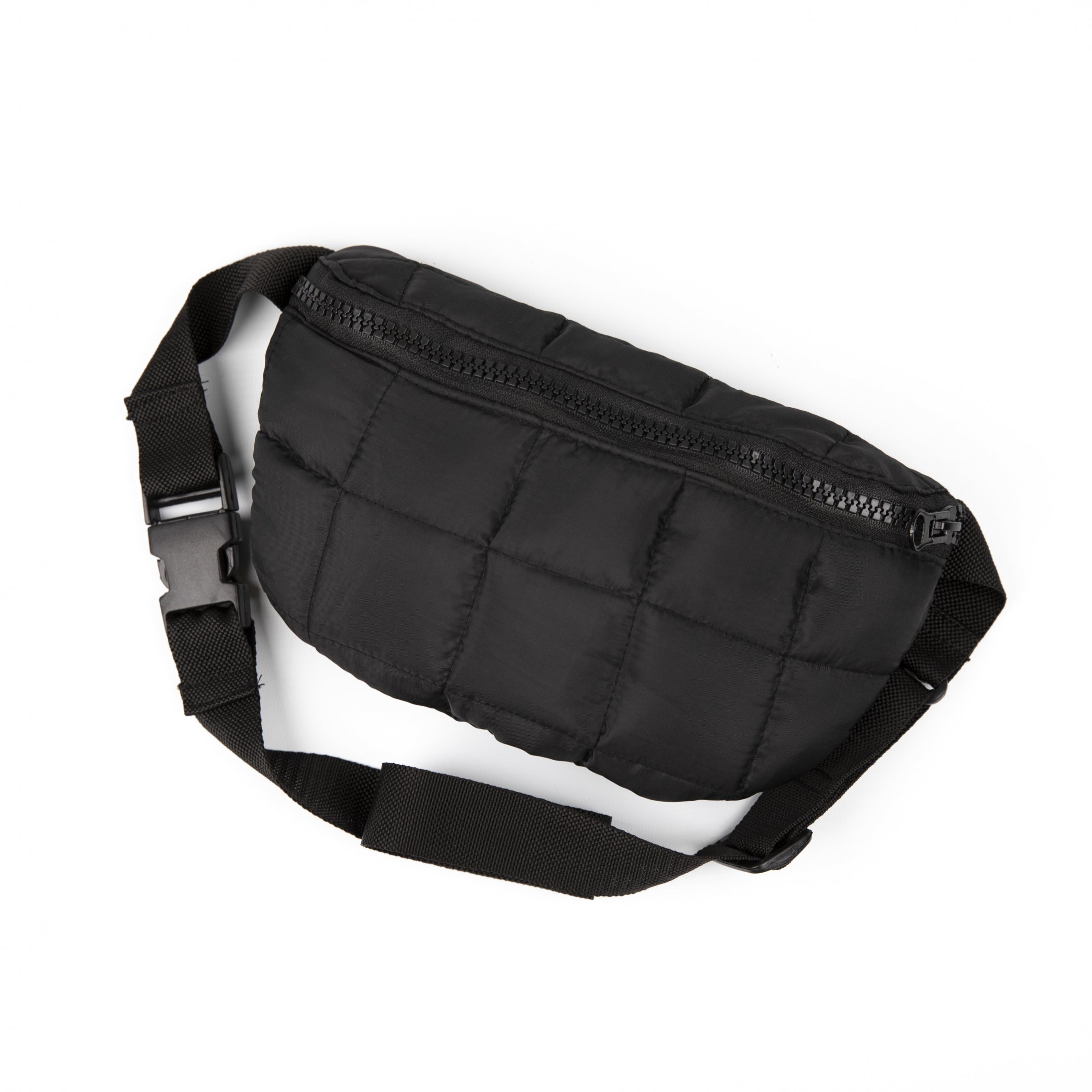 Sac banane en nylon ouatiné façon doudoune avec bandoulière réglable et boucle à clic. Fermeture zip.