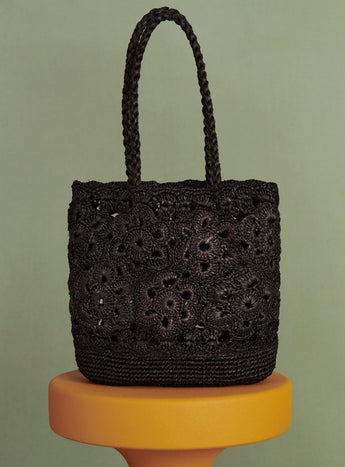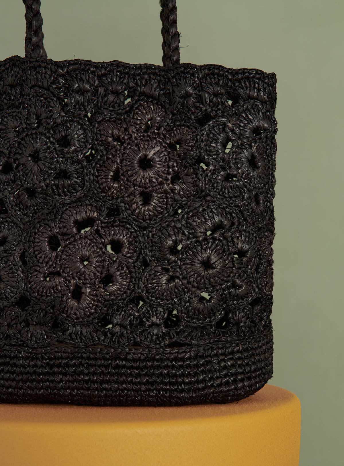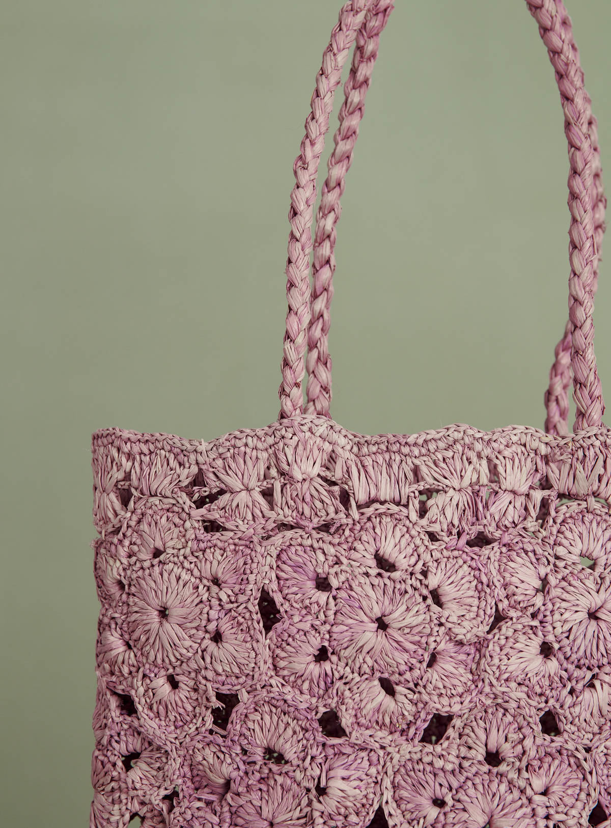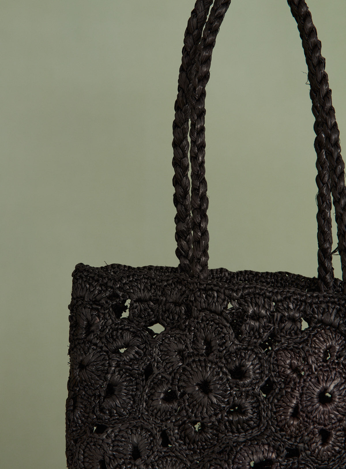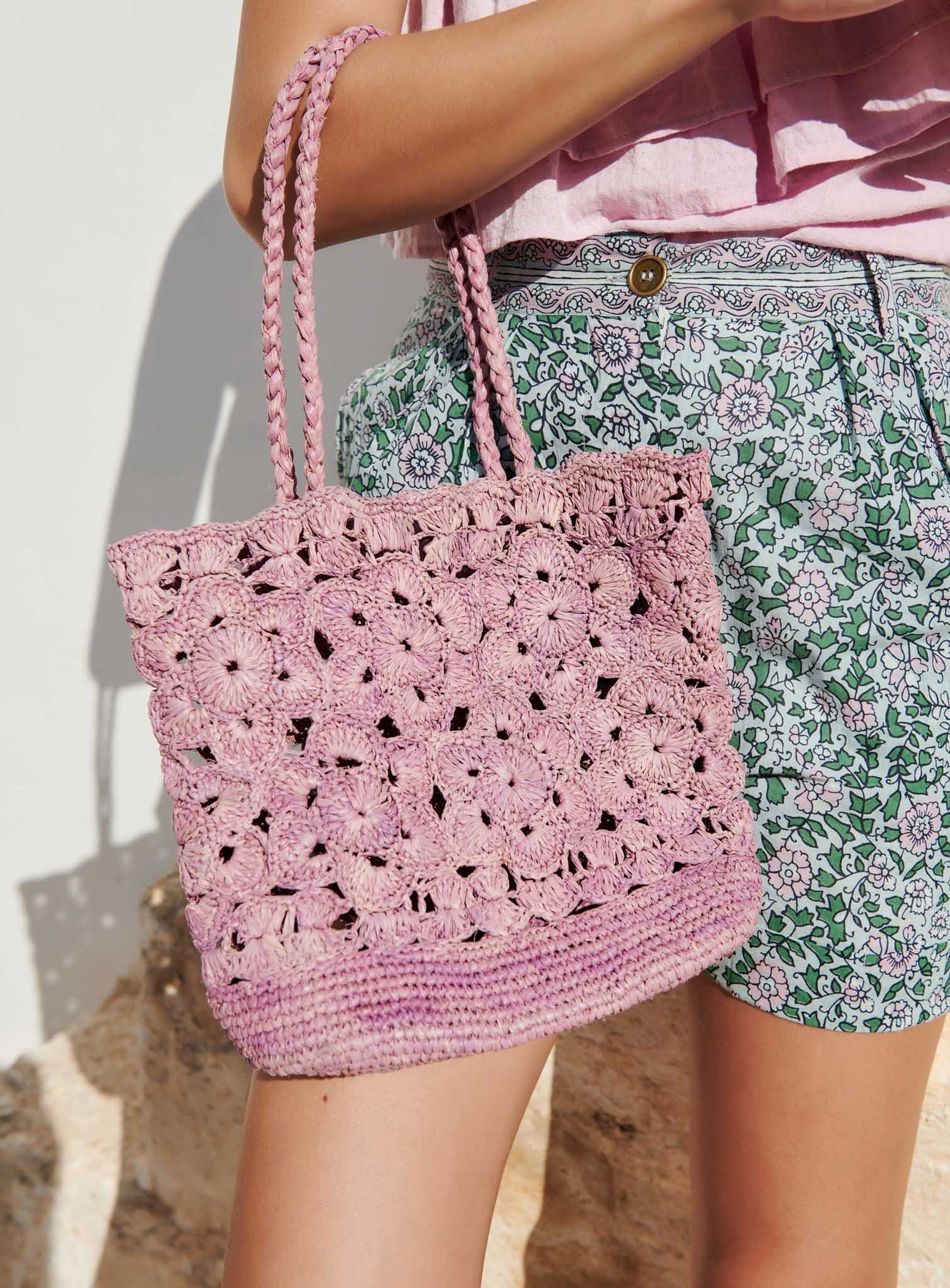 Petit sac à main en raphia fait à la main. Se porte à l'épaule.