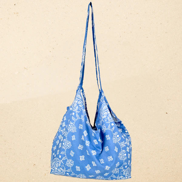 Ce sac Clemmence en coton imprimé bandana est un accessoire idéal pour vos tenues décontractées. Avec sa toile de couleur denim, il apportera une touche tendance à votre look. Pratique et résistant, ce tote bag vous accompagnera partout avec style. Adoptez-le sans plus tarder!