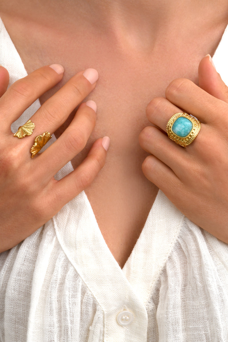 Sur les photos portées, le mannequin porte également les bagues Helena et Olympéa