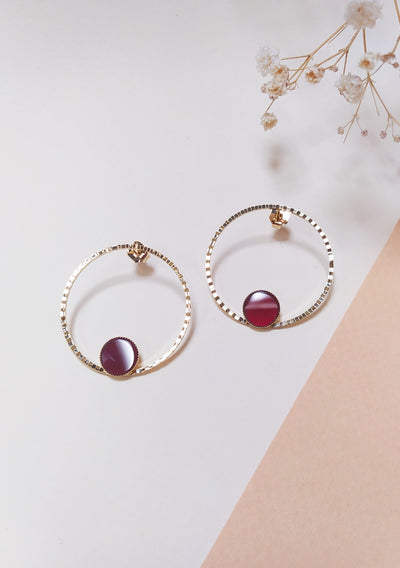 Boucles d'oreilles uniques avec un anneau et une pierre semi-précieuse, qui sauront sublimer vos looks au quotidien!
