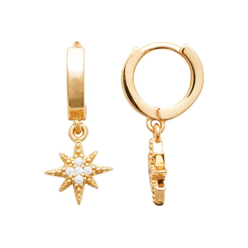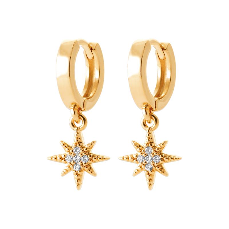 Amaralie associe une créole dorée épurée à une étoile délicatement suspendue, sertie de petits éclats lumineux. Élégantes et pleines de charme, elles apportent une touche solaire et féminine qui illumine l’oreille avec finesse.