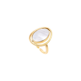 La bague Elora séduit par son design et son élégance intemporelle. Sa pierre centrale en nacre, délicatement cerclée d’un anneau doré, possède une particularité unique : elle tourne, offrant un bijou ludique et raffiné à la fois. Une pièce qui capte la lumière et sublime vos gestes au quotidien.