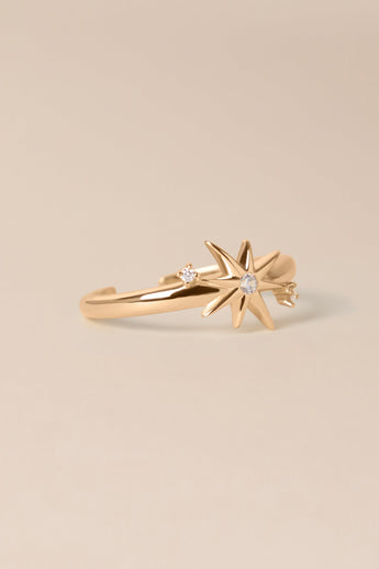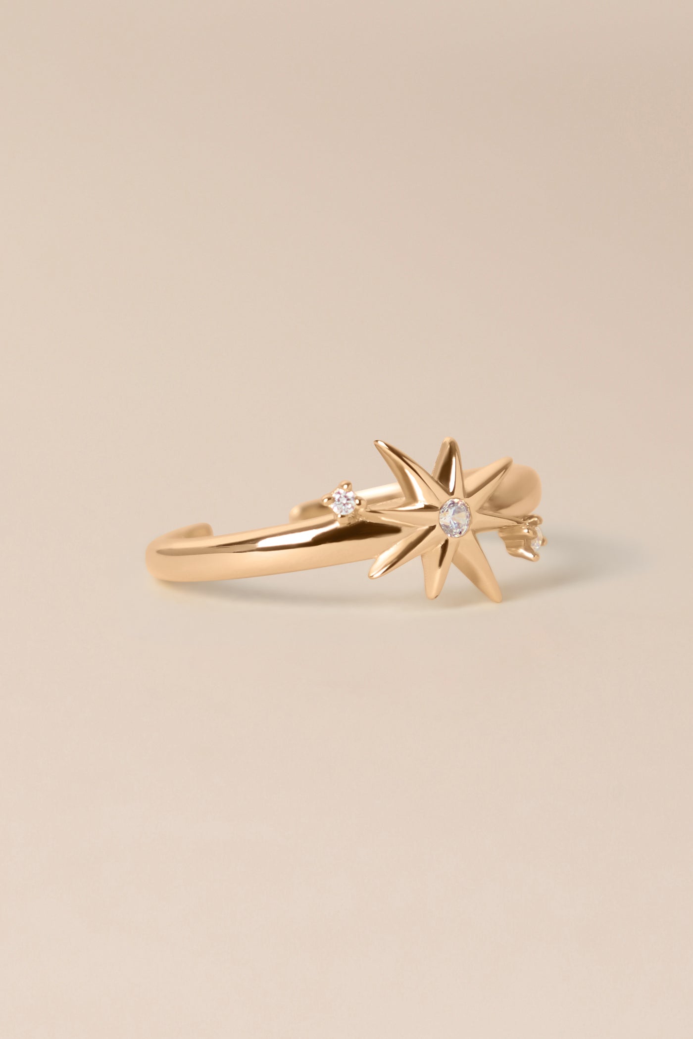 Bague au détail étoilé serti de 3 petit zircons blancs. Bague réglable.