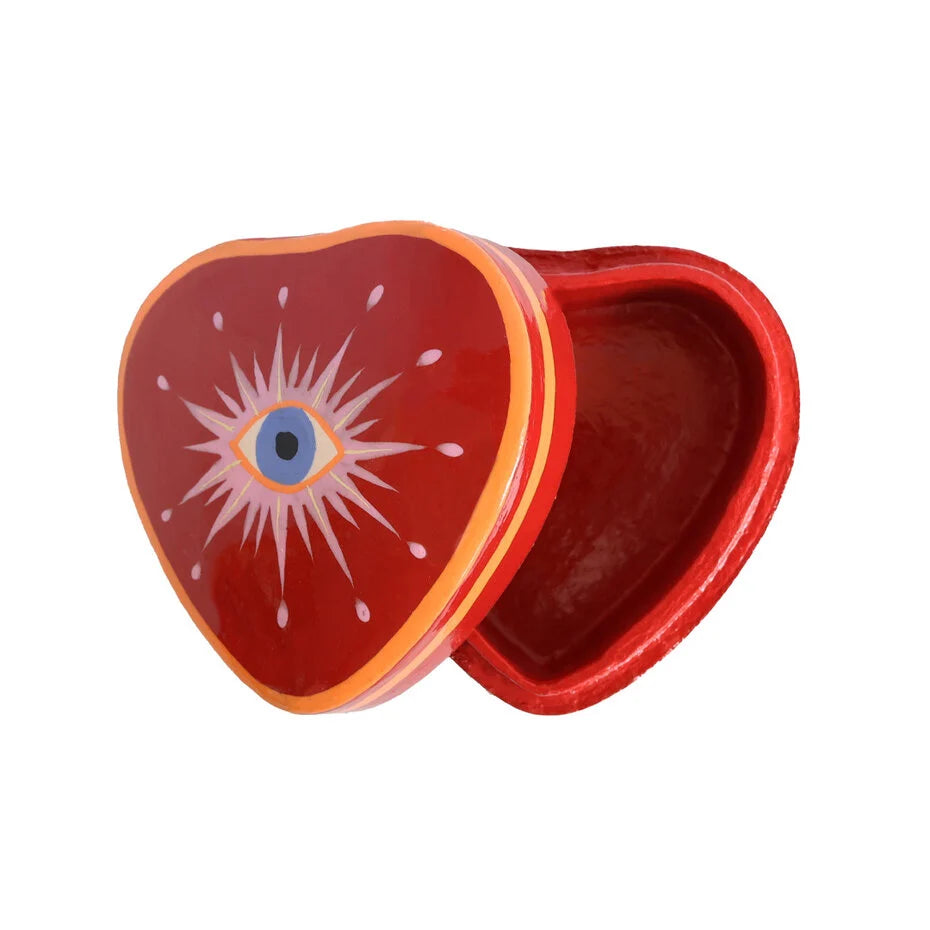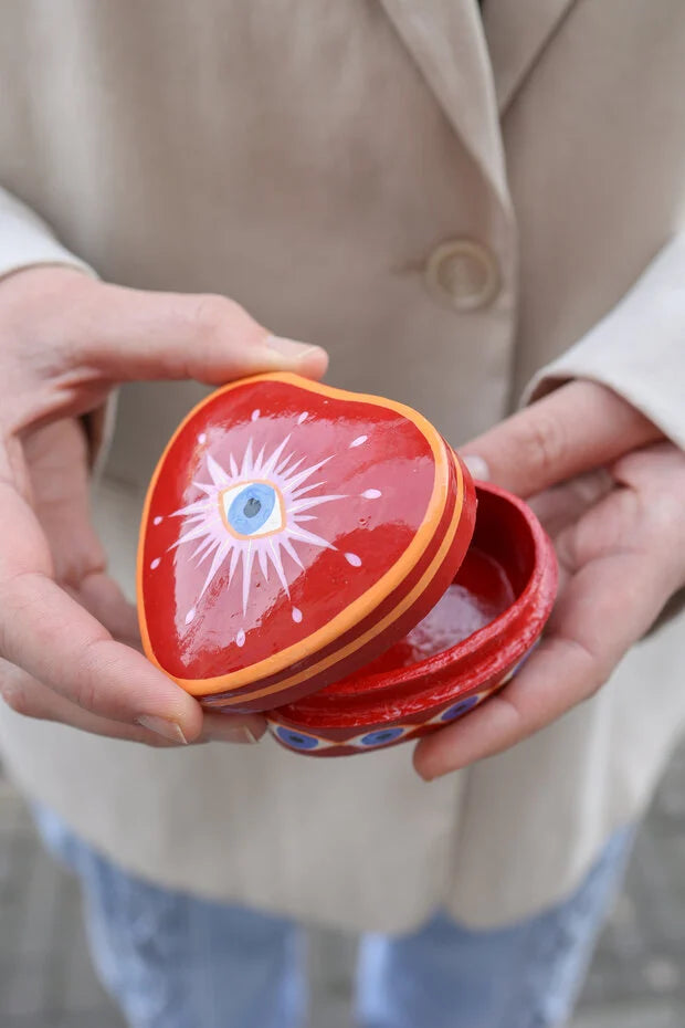 Mystique et pleine de charme, la boîte Œil en forme de cœur est une véritable œuvre d’art artisanale. Peinte à la main avec soin, elle combine symbolisme et douceur grâce à son design éclatant et protecteur. Idéale pour y ranger vos petits trésors, bijoux ou secrets, elle apportera une touche d’originalité et de magie à votre intérieur.