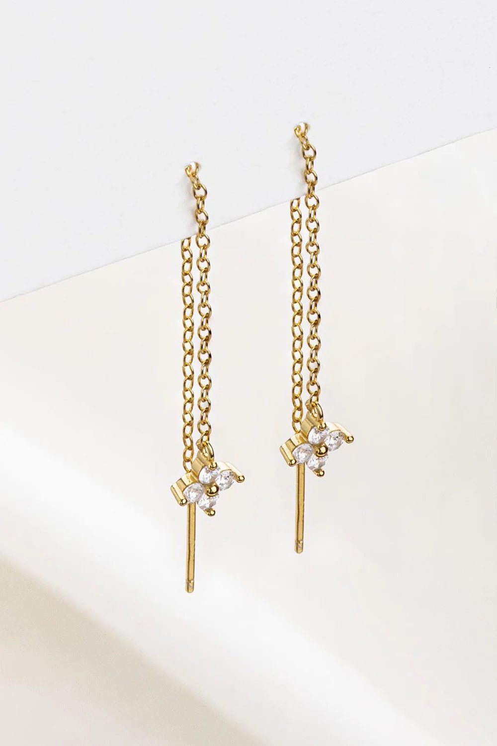 Ces boucles d'oreilles en noir sont un ajout élégant à votre collection de bijoux. Avec un pendentif en zircons suspendu à une chaîne délicate, elles allient délicatesse et élégance. Parfaites pour toutes les occasions, elles apportent une touche raffinée à votre tenue.