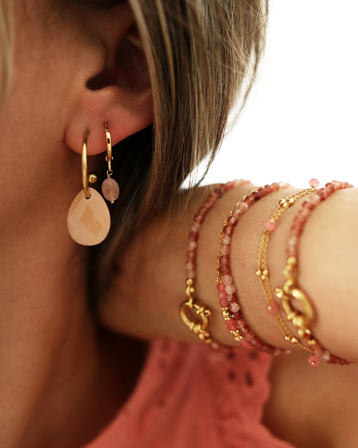 Des mini-créoles ornées d'une belle pierre en quartz rose... Si belles !