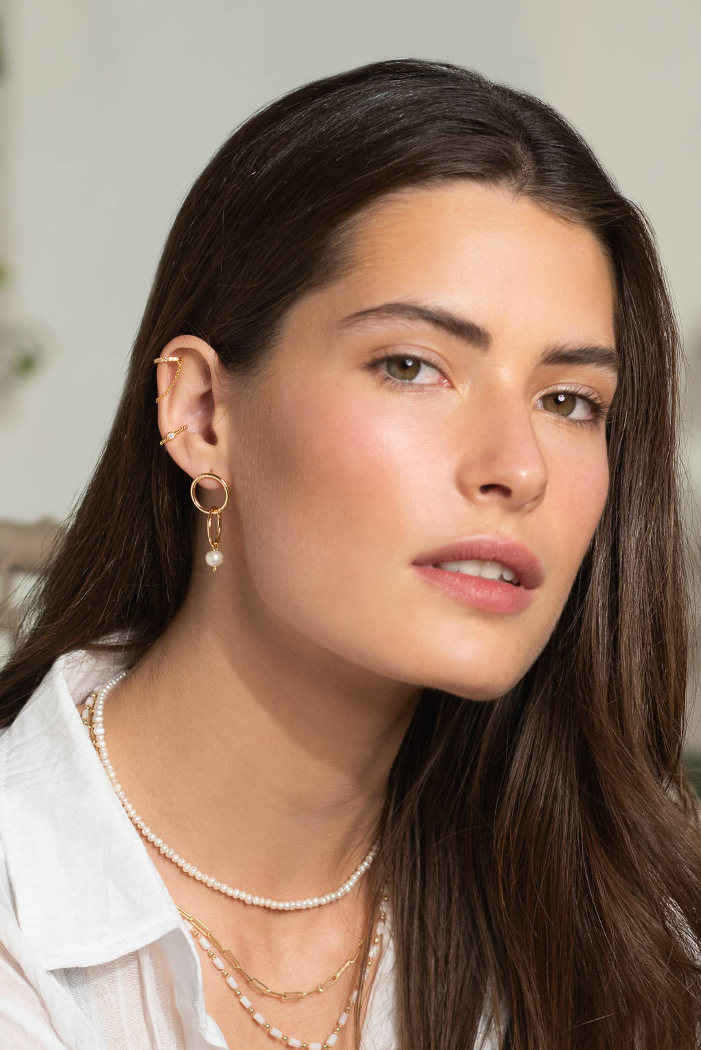 Boucles tendances et intemporelles à la fois, composée pour une petite perle et deux anneaux, les boucles d'oreilles Gabby sont juste ce qu'il faut.