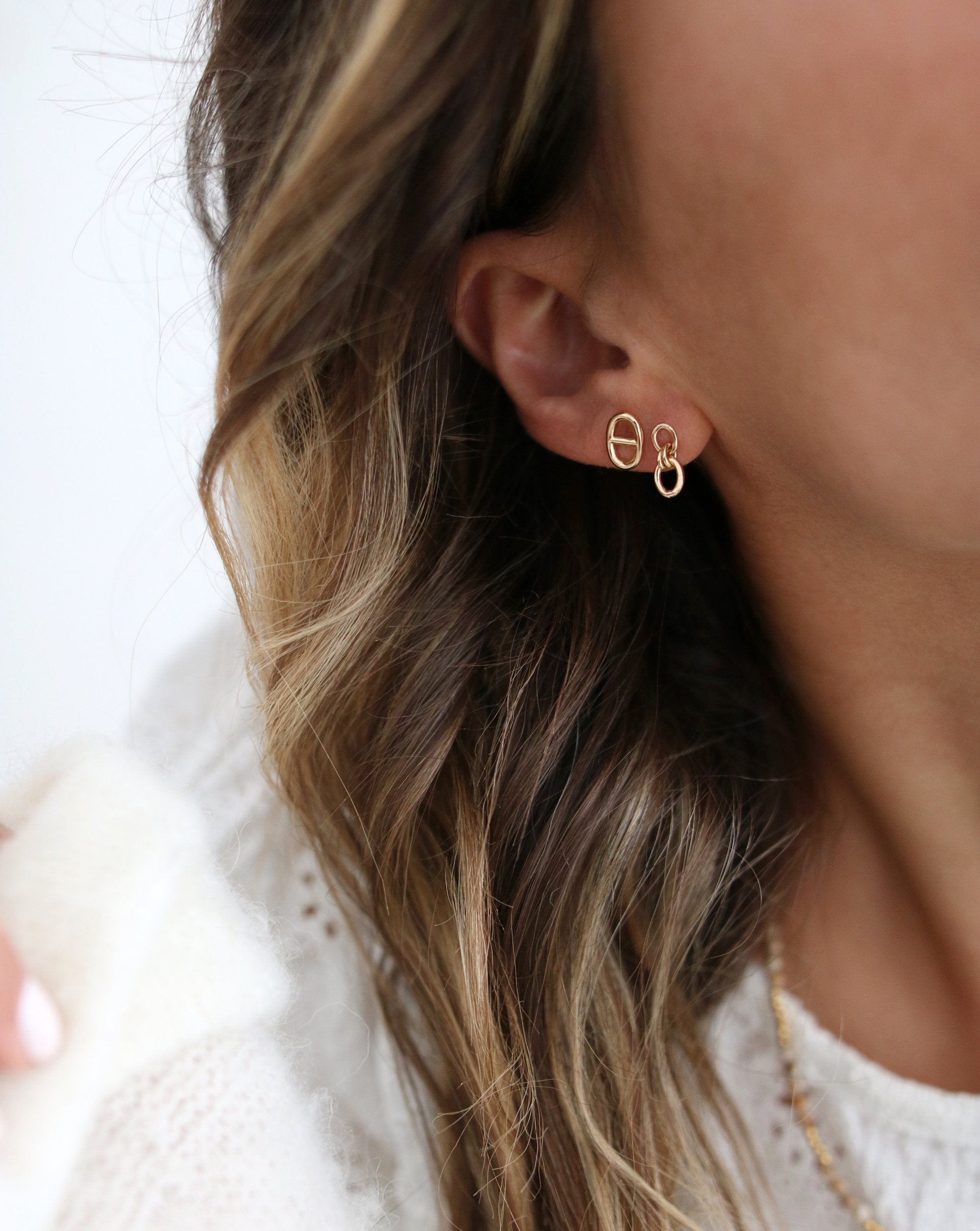 Boucles d'oreilles de la collection Boisée! Ces ravissantes petites puces d'oreilles surfent sur la tendance maillons larges.