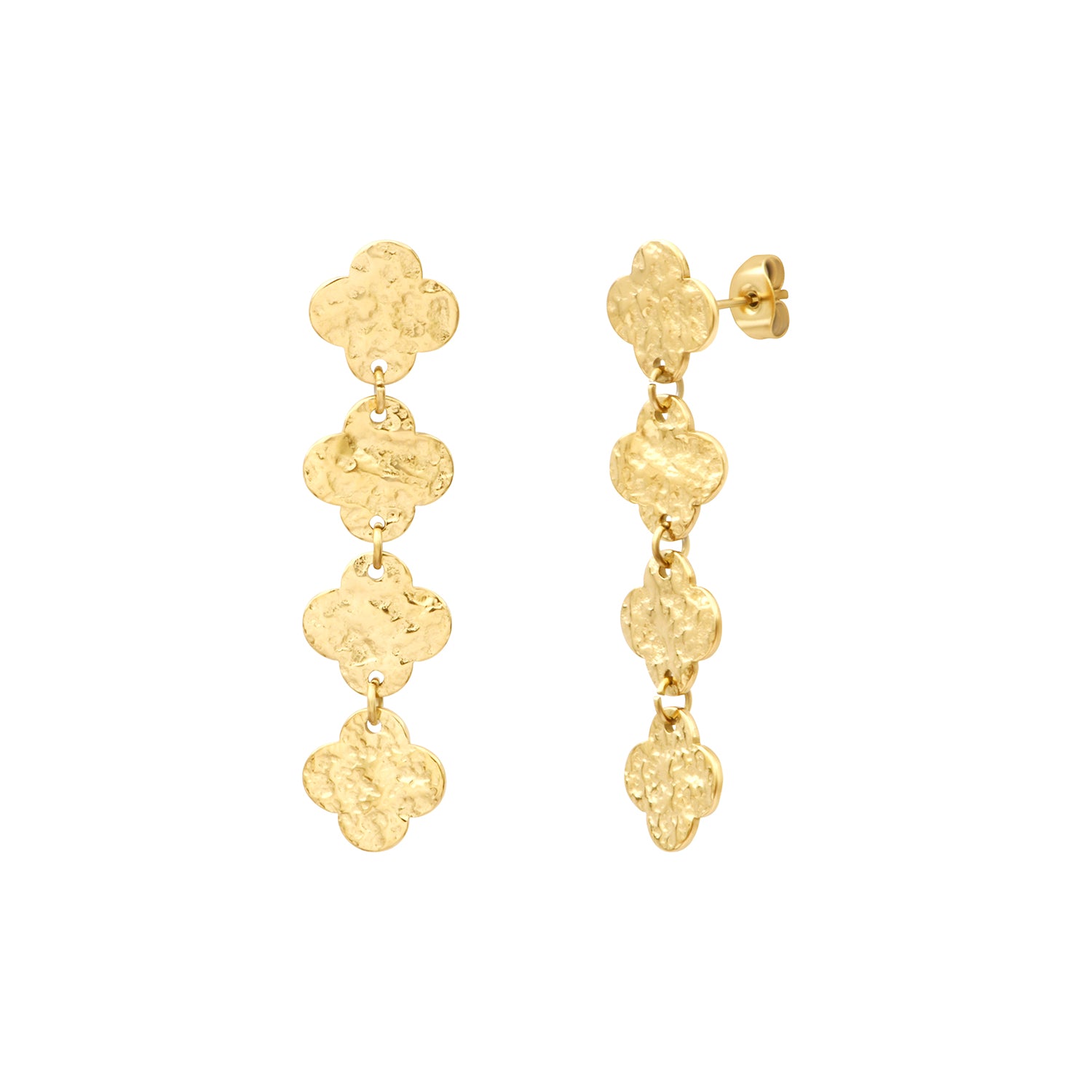 Les boucles d’oreilles Lyra associent l’élégance intemporelle du motif trèfle martelé à un jeu de lumière subtil. Leur design en cascade de quatre éléments dorés capte l’éclat à chaque mouvement, apportant une allure sophistiquée et lumineuse. Des boucles idéales pour sublimer vos tenues, du quotidien aux plus grandes occasions.