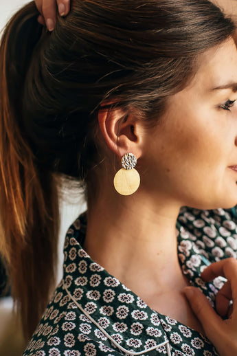 Boucles d'oreilles composées d'un disque martéle et d'un disque mat... pour sublimer chaque femme avec un bijoux!