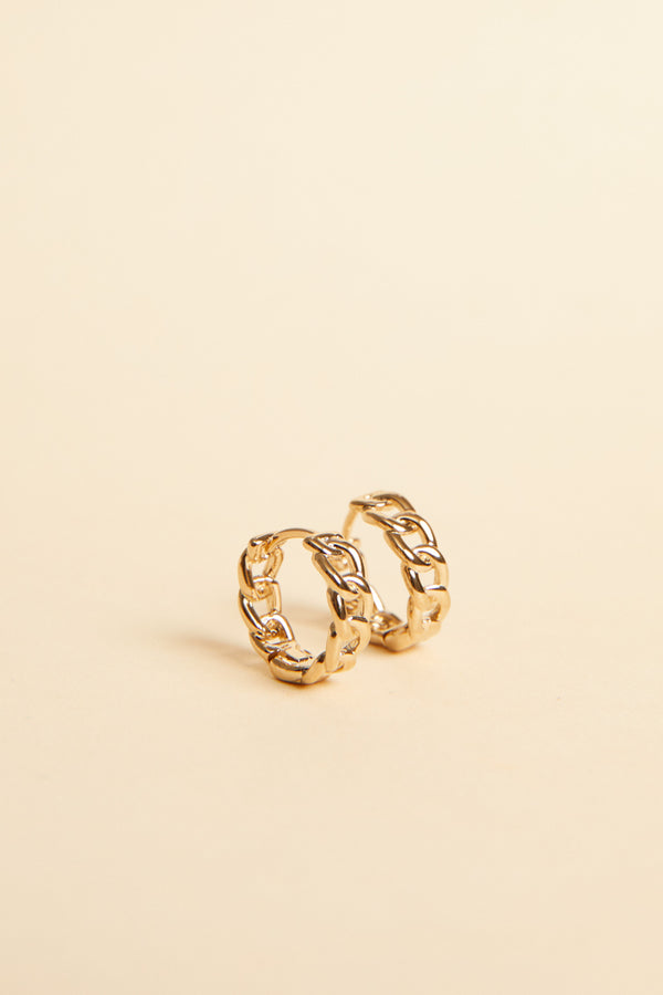 Nos petites boucles Imani reprennent la fameuse maille gourmette en plaqué or 3 microns. Les favorites de l'équipe !