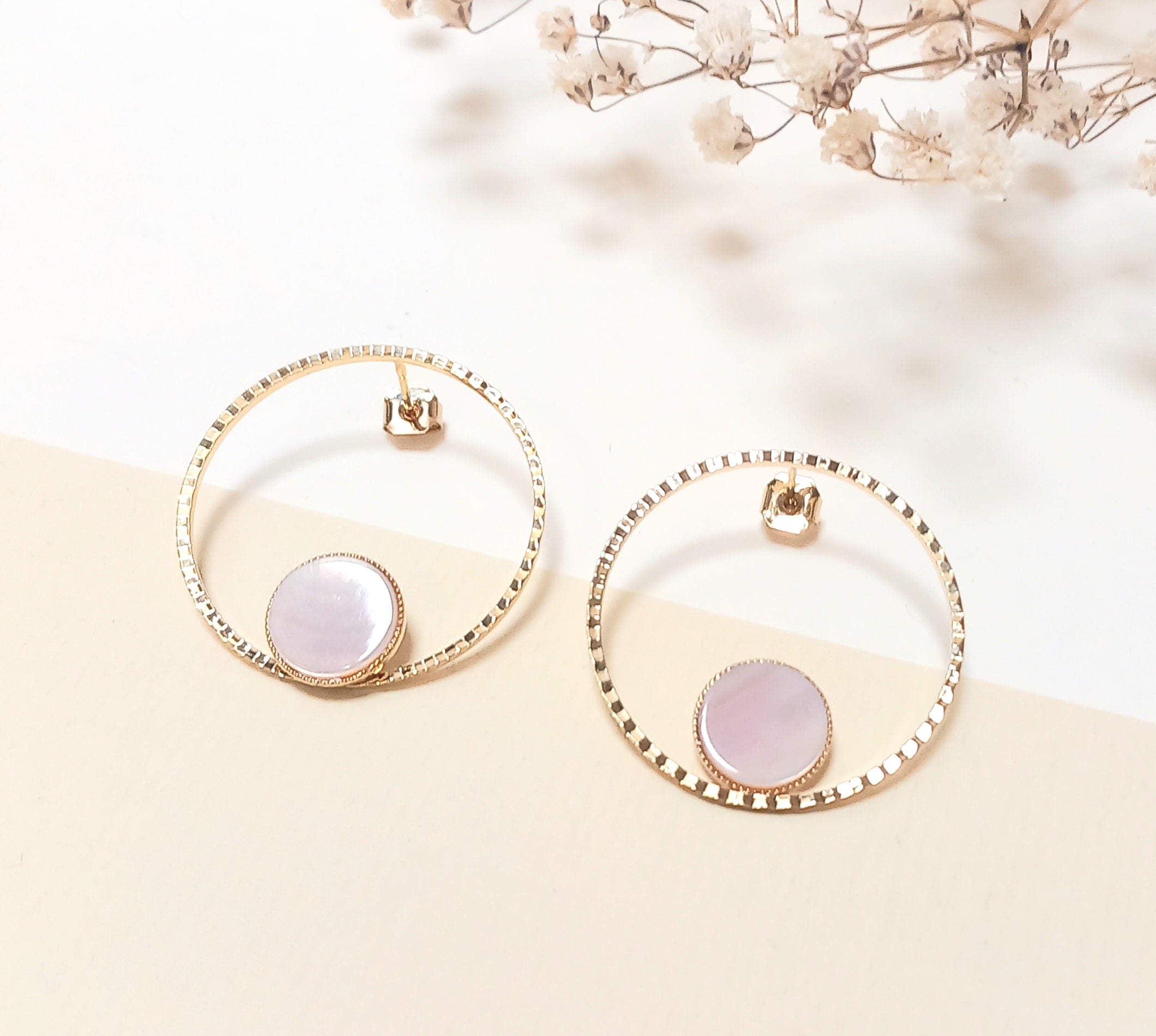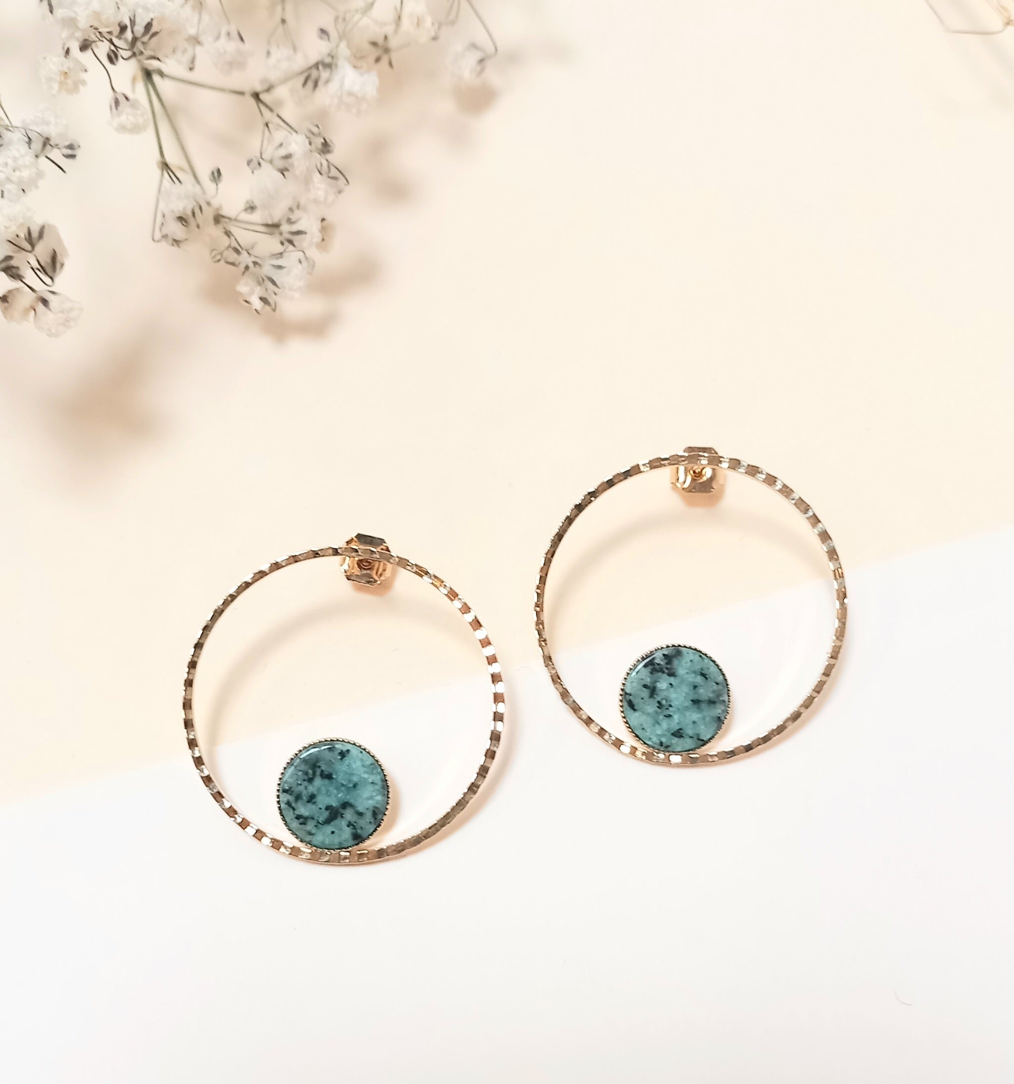 Boucles d'oreilles uniques avec un anneau et une pierre semi-précieuse, qui sauront sublimer vos looks au quotidien!