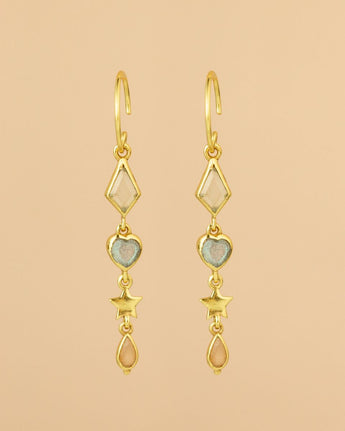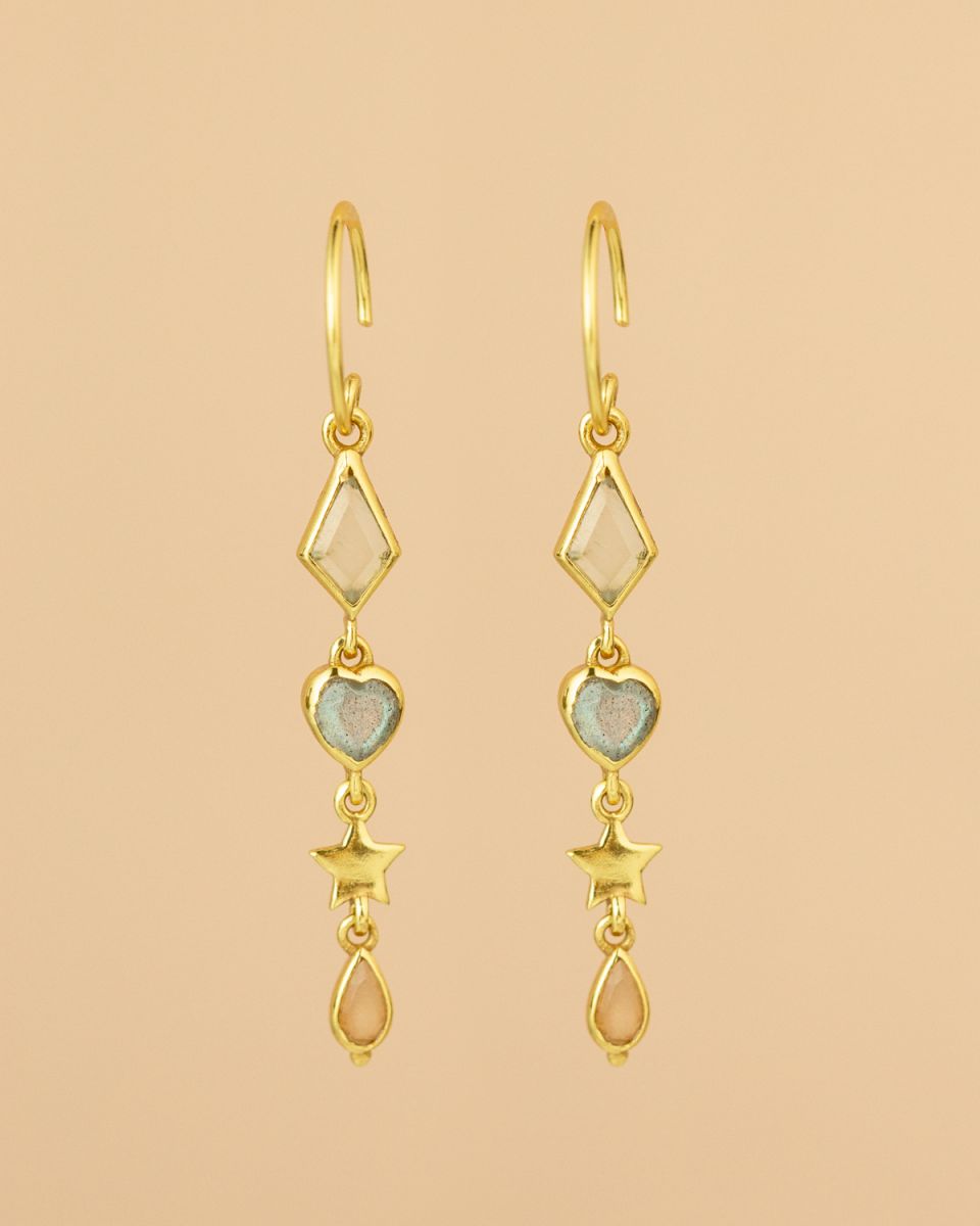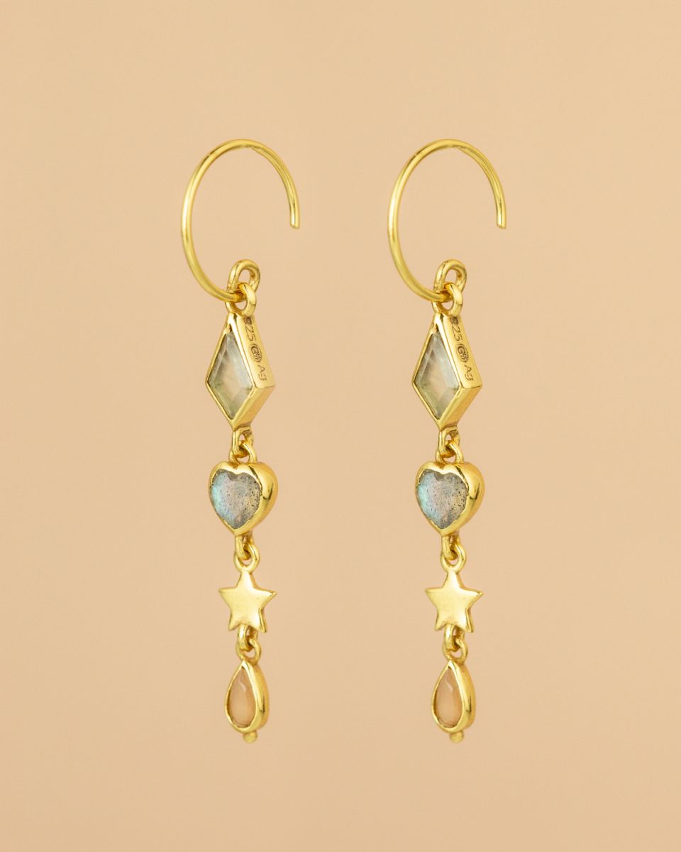 Les boucles Mira Petite capturent toute la douceur d’un ciel étoilé. Fines et lumineuses, elles associent des pierres aux reflets nacrés et célestes à un délicat fil doré, créant une harmonie pleine de poésie. Leur silhouette allongée sublime le port de tête avec élégance et légèreté. De véritables talismans de lumière, à porter au quotidien comme pour les grandes occasions.