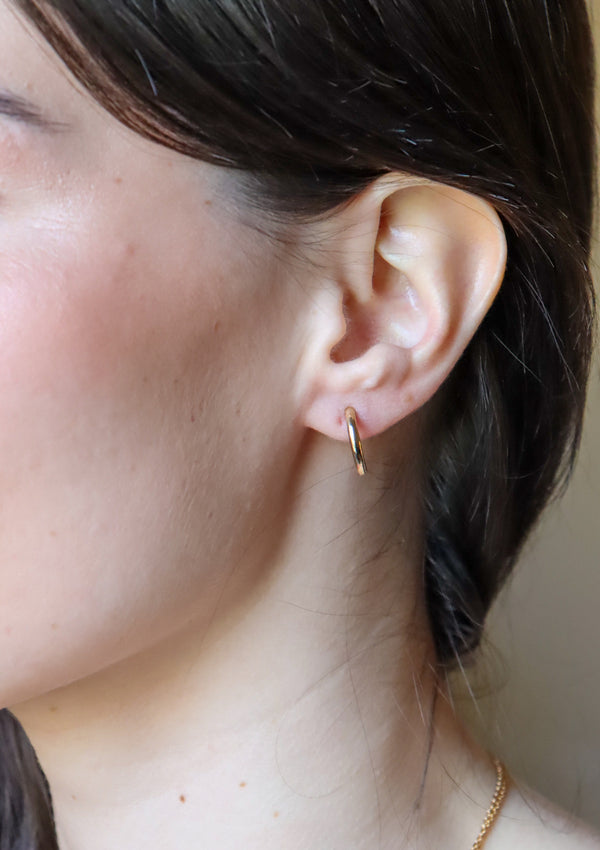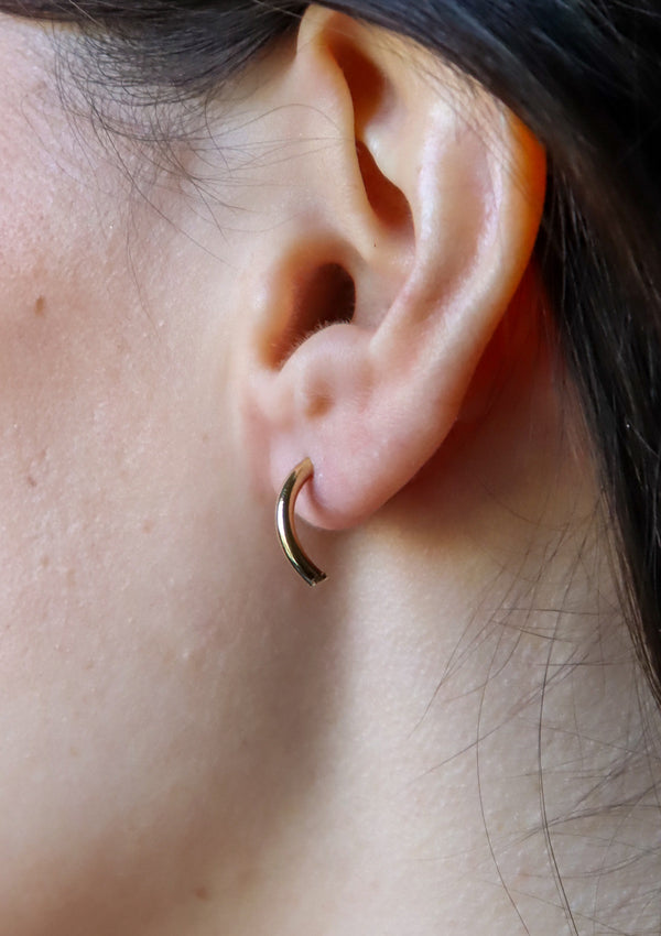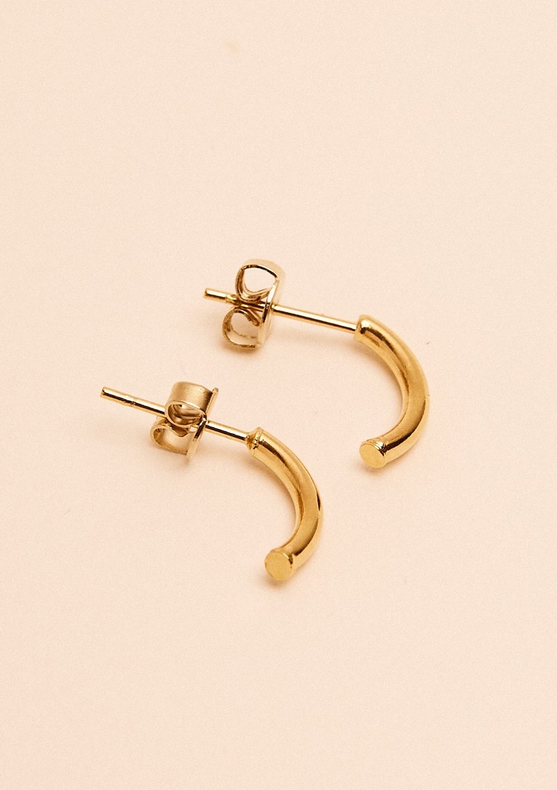 Petits puces lisses en forme incurvée, en plaqué or 3 microns avec ses fermoirs poussettes.