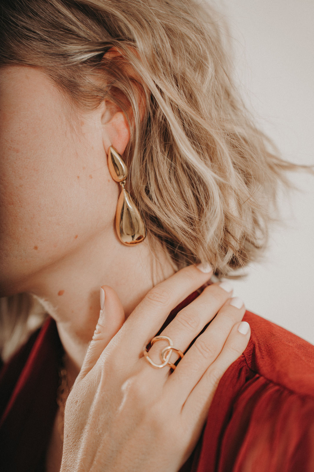 Sur la première photo portée, la mannequin porte également la bague Asher