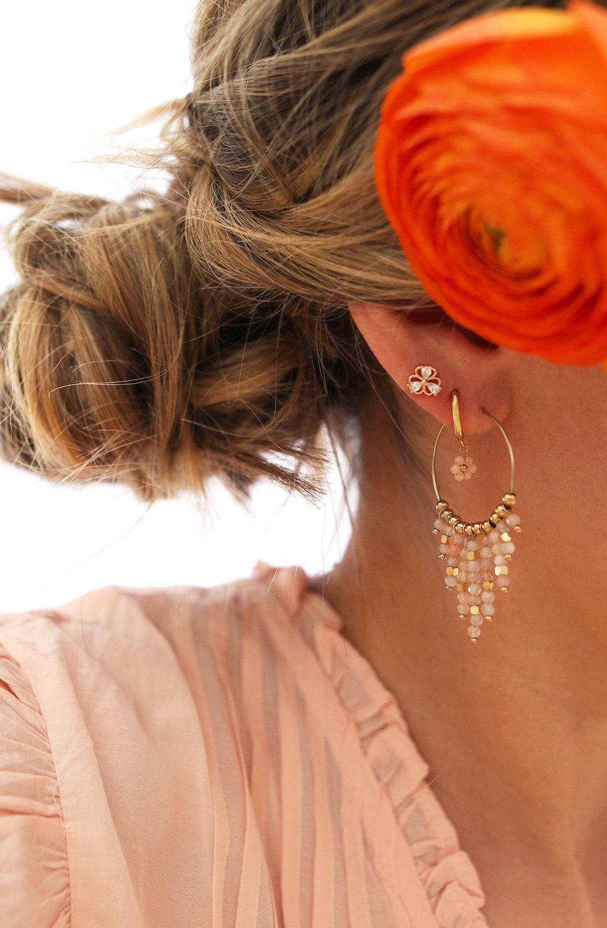 Sur la photo portée, le mannequin porte également les Mini Créoles Florinda.