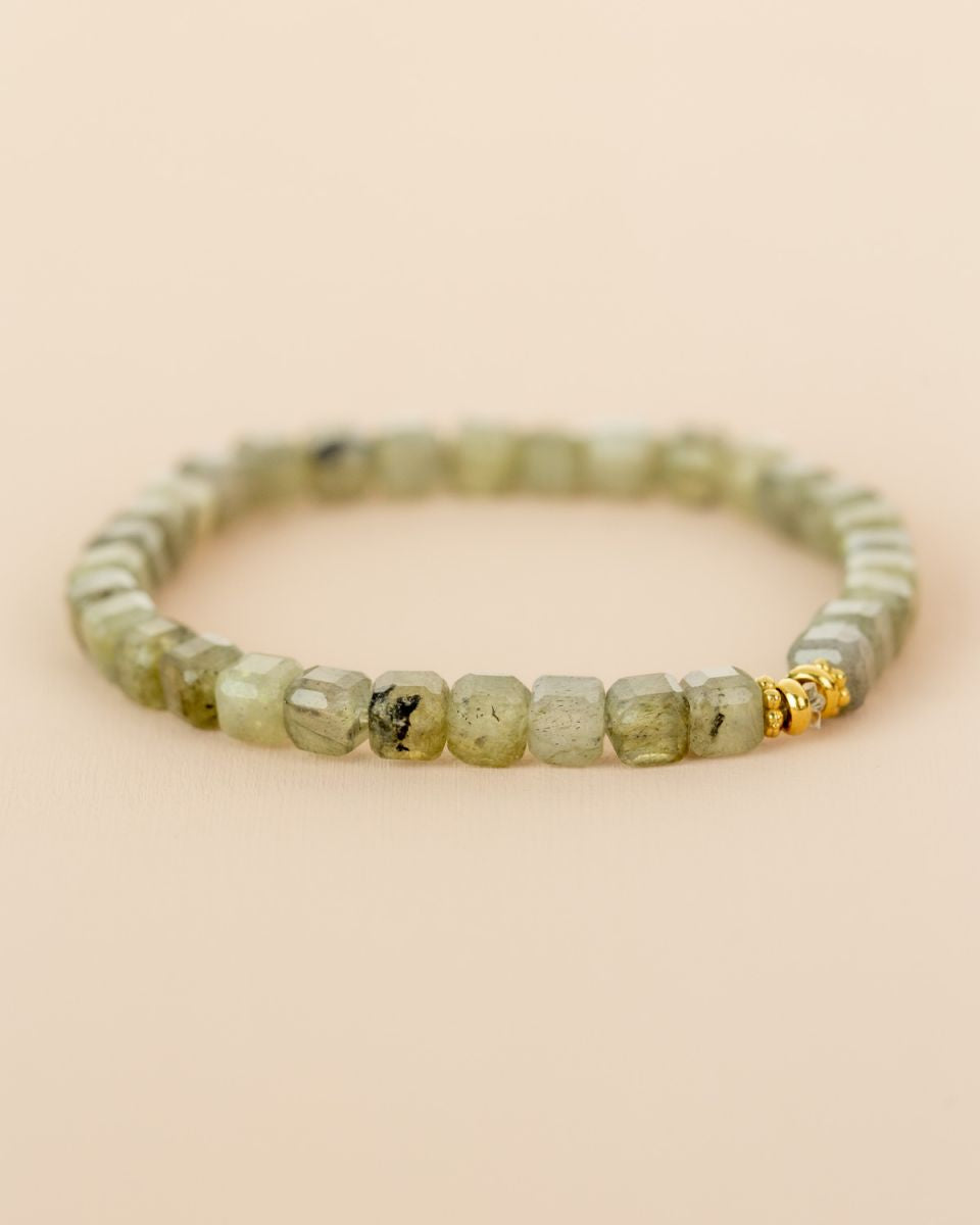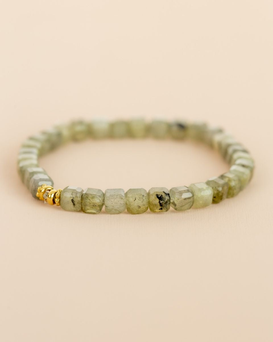 Le bracelet Suri incarne la puissance douce de la nature. Ses perles facettées dans des nuances de vert et de gris se parent de reflets subtils, évoquant la lumière qui se joue sur les pierres de rivière. Un bijou à l’allure minérale et apaisante, symbole d’équilibre et de protection parfait pour celles qui recherchent une élégance discrète mais pleine de caractère.