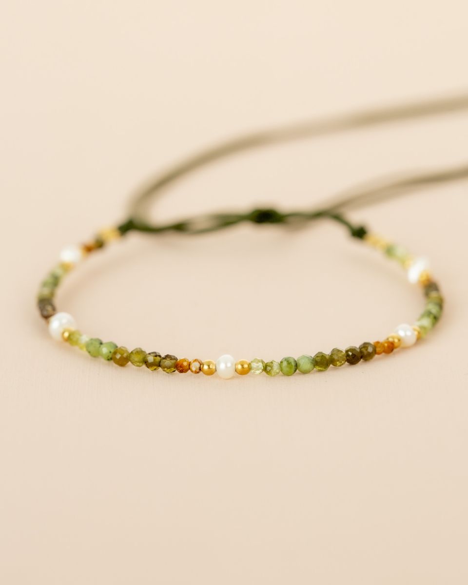 Le bracelet Meli incarne la douceur et la légèreté avec ses nuances de vert et ses touches dorées éclatantes. Orné de délicates perles naturelles et de perles blanches lumineuses, il apporte une note de fraîcheur et d’harmonie à votre poignet. Un bijou fin et naturel, parfait pour sublimer vos tenues estivales avec élégance et simplicité.