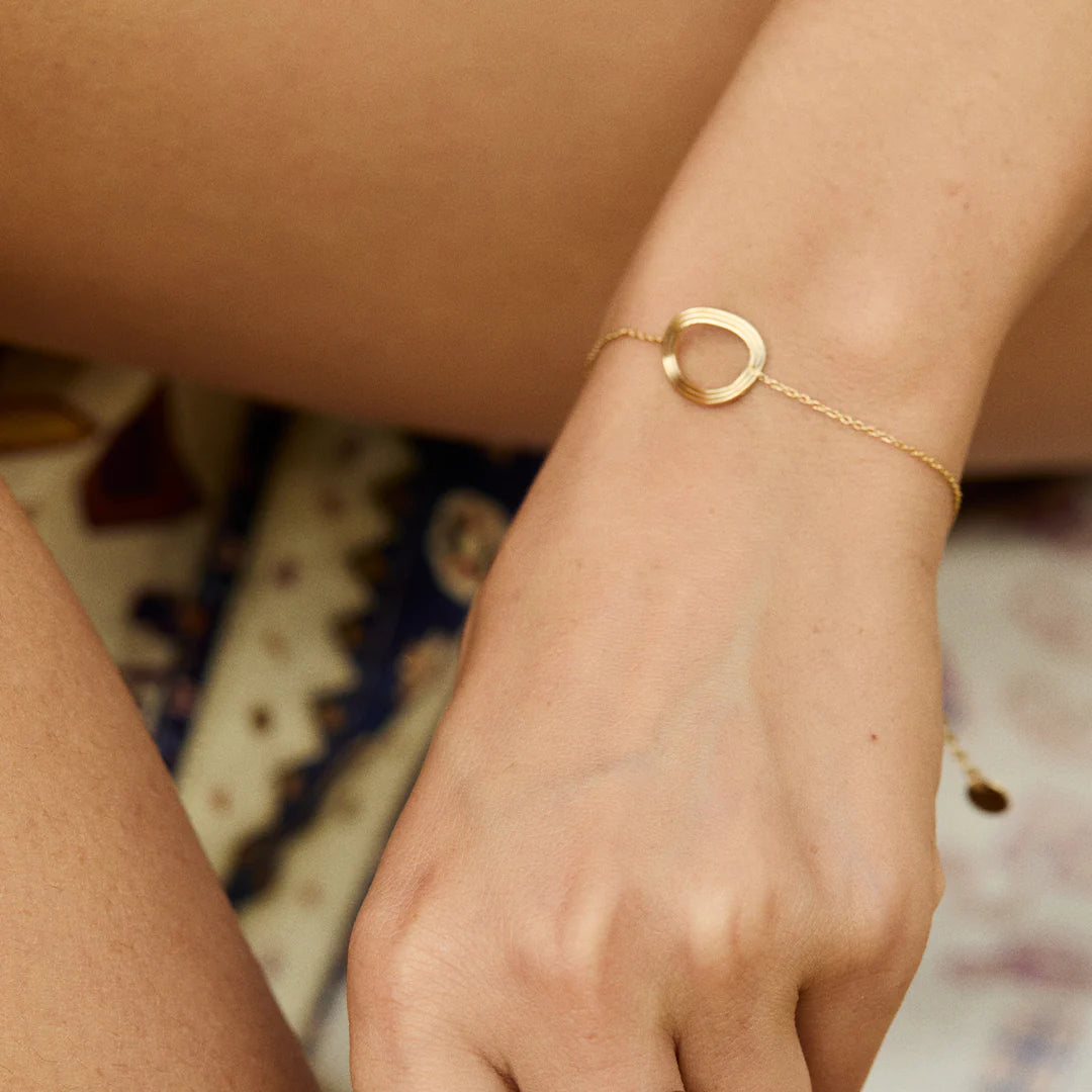 Le bracelet Destin incarne la simplicité élégante et la force des liens. Son motif central, formé d’anneaux entrelacés dorés à l’or fin, symbolise l’union, l’équilibre et les connexions qui jalonnent nos vies.
