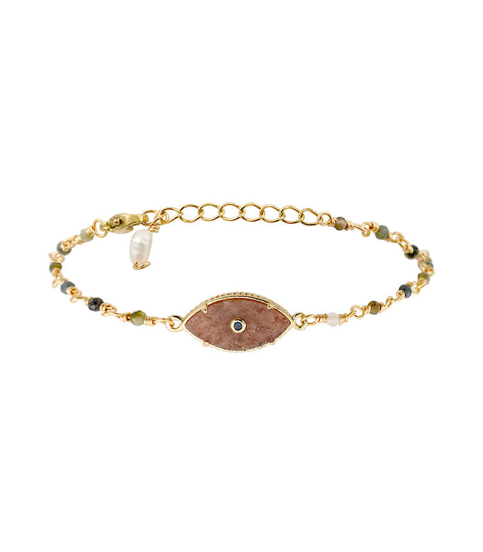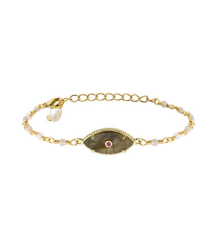 Un joli bracelet orné d'une pierre gemme en forme d'oeil protecteur. Collection Noël Magique.