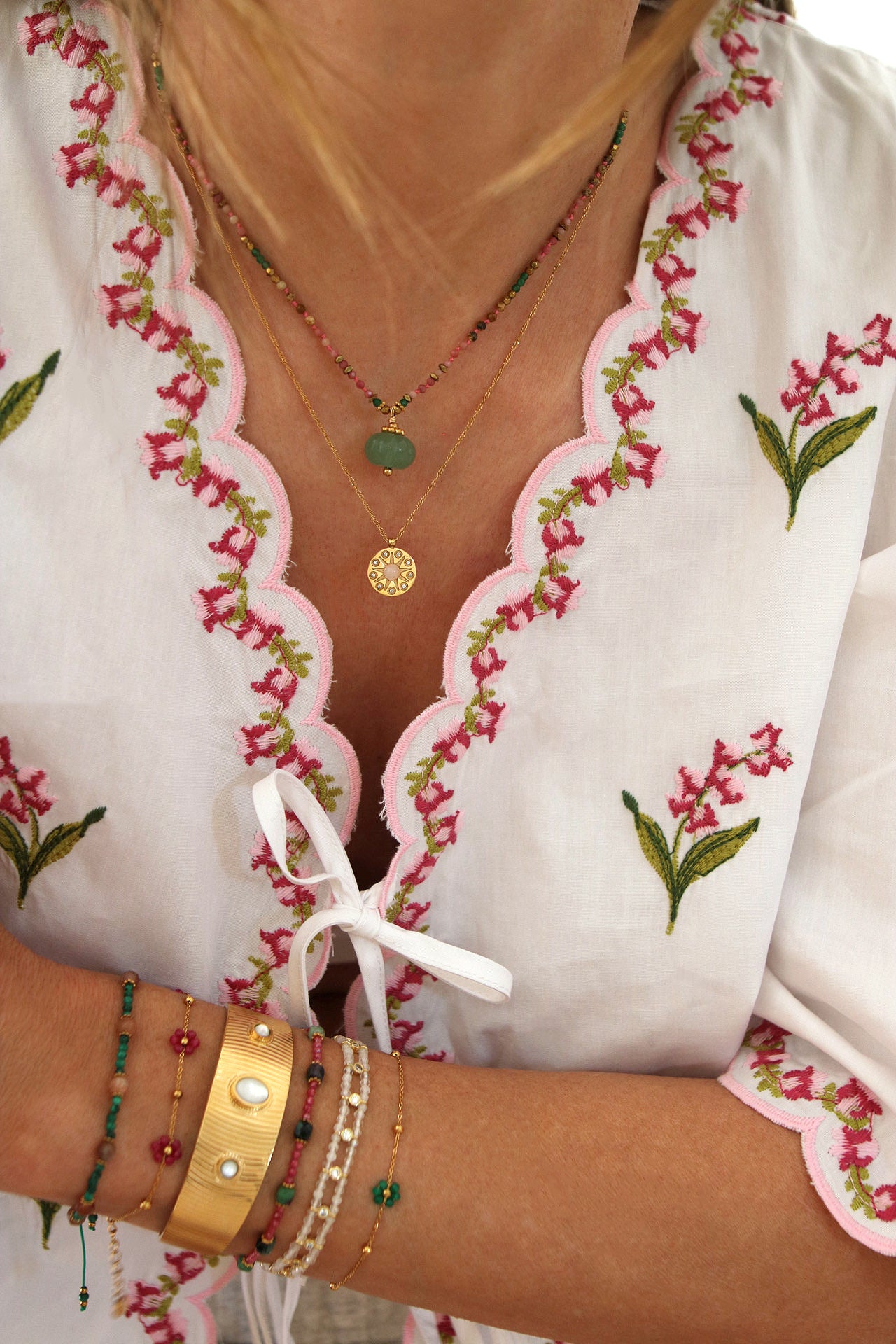 Sur la deuxième photo portée, le mannequin porte également les collier Latido et Amanecer et les bracelets Gabriel et Raices.