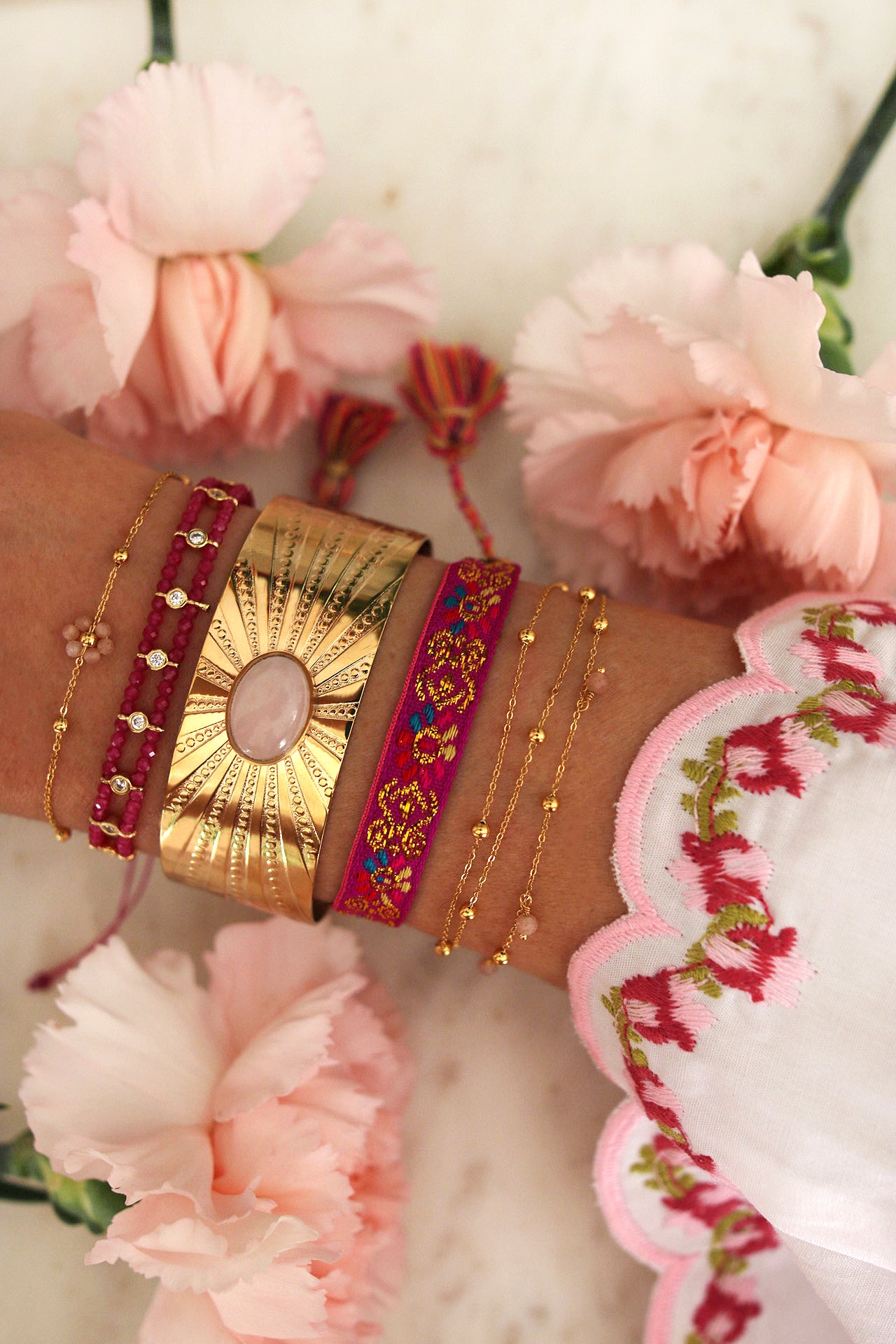 Sur la photo portée, le mannequin porte également un bracelet Raices et la manchette Amanecer.