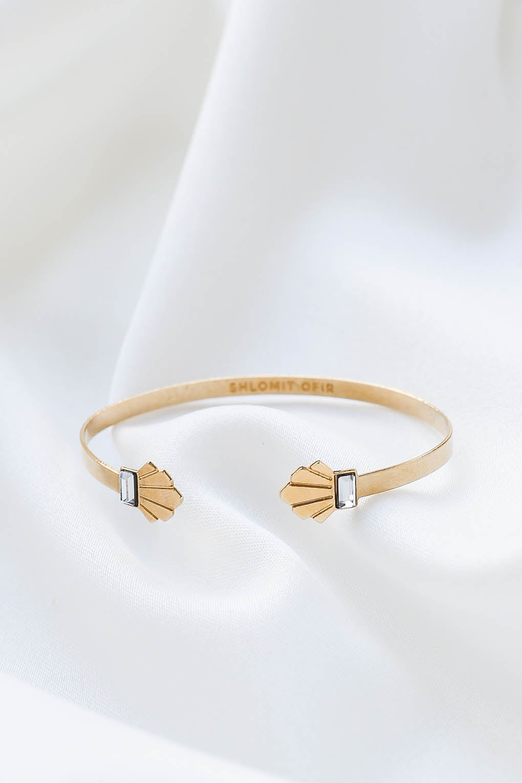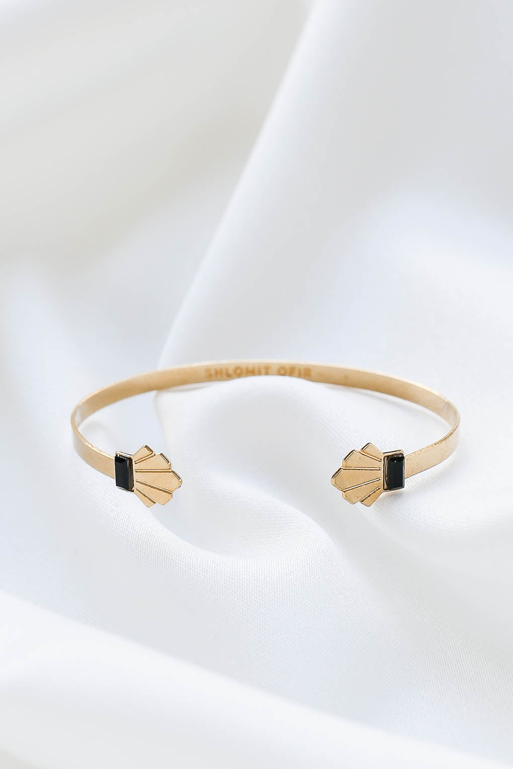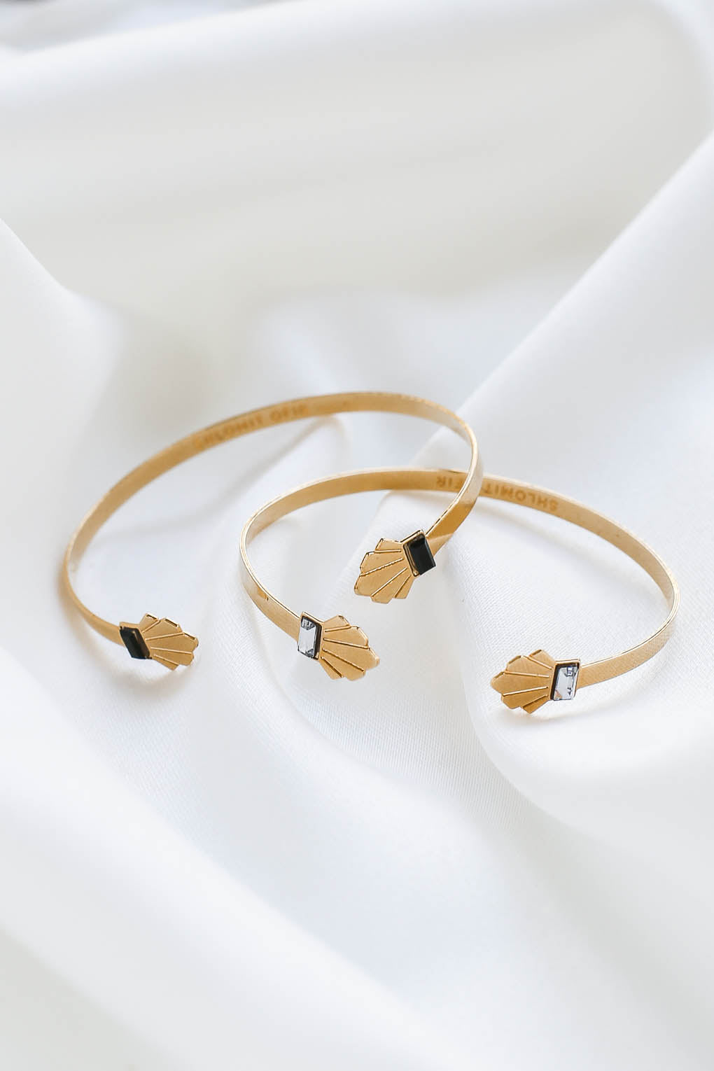 Magnifique bracelet manchette inspiré de l’Art Déco. Serti de deux pierres en cristal de verre.