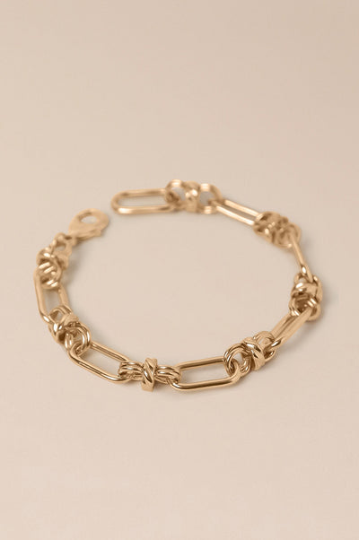 Le bracelet Marlo est composé d'une maille rectangle large reliée par 3 anneaux dont un strié pour un rendu élégant et intemporel. Une maille XL qui habillera sans difficulté votre poignet.