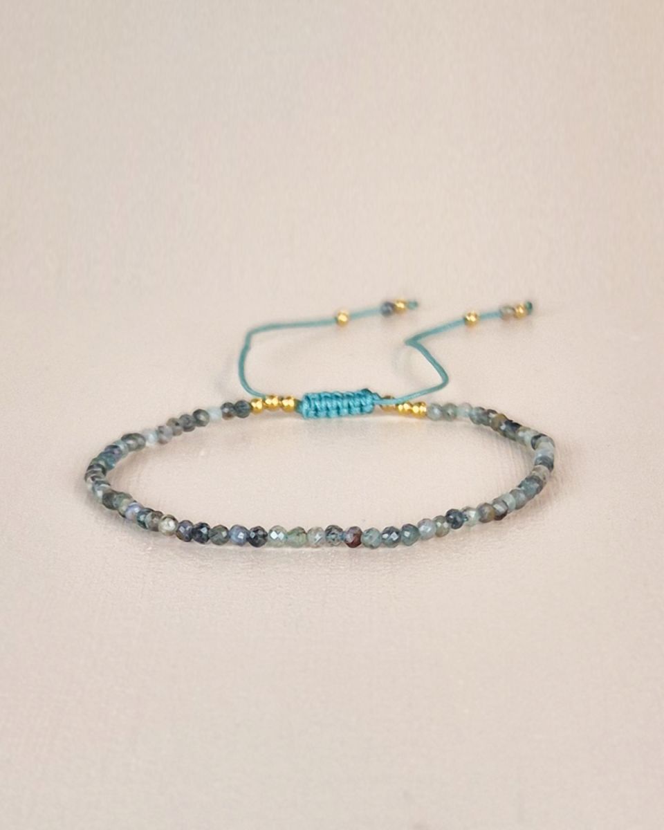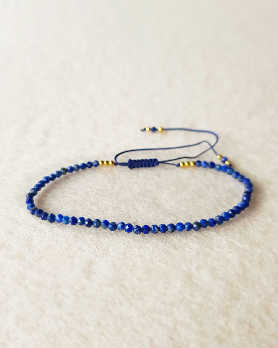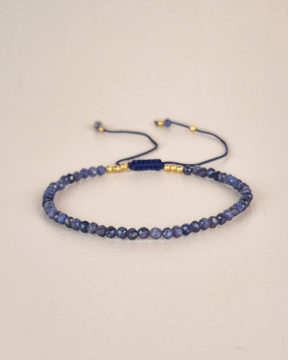 Le bracelet Sofia séduit par son élégance intemporelle et ses reflets profonds de bleu. Ses perles délicatement facettées évoquent la sérénité des ciels nocturnes, sublimées par de fines touches dorées. Un bijou raffiné et apaisant, parfait pour apporter une touche chic et harmonieuse à vos tenues du quotidien.
