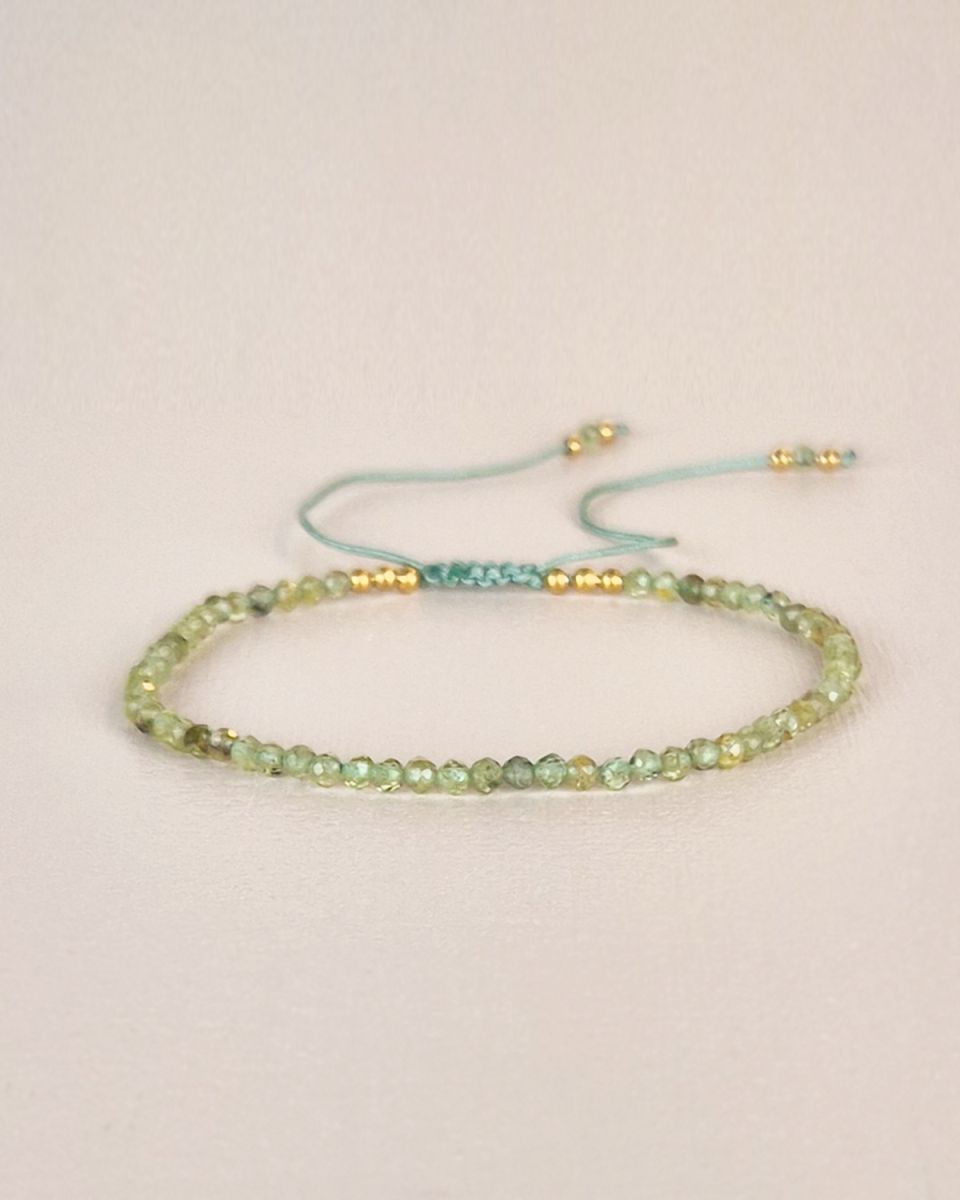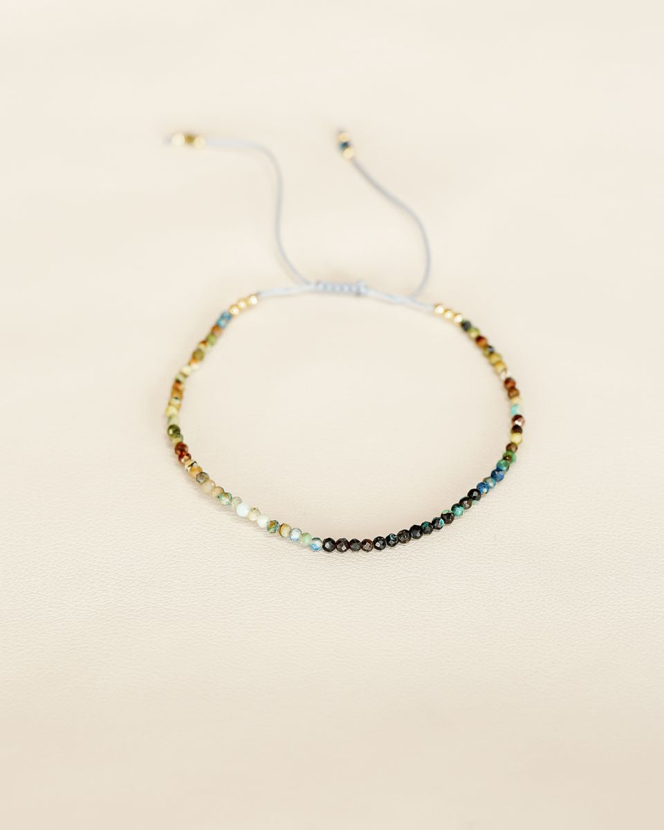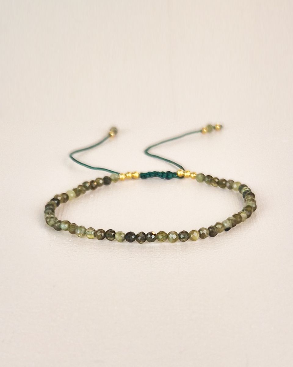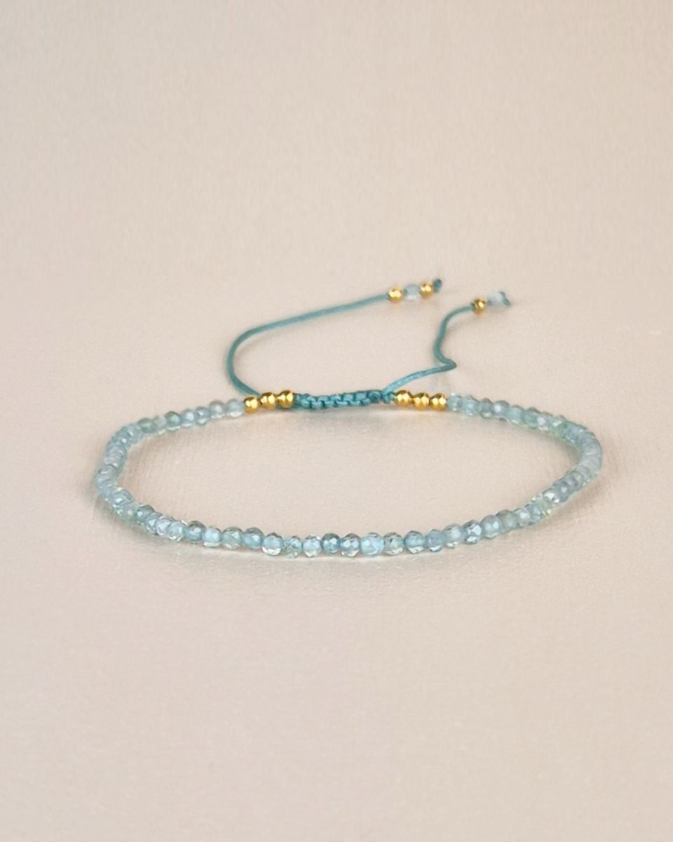 Le bracelet Sofia séduit par son élégance intemporelle et ses reflets profonds de bleu. Ses perles délicatement facettées évoquent la sérénité des ciels nocturnes, sublimées par de fines touches dorées. Un bijou raffiné et apaisant, parfait pour apporter une touche chic et harmonieuse à vos tenues du quotidien.
