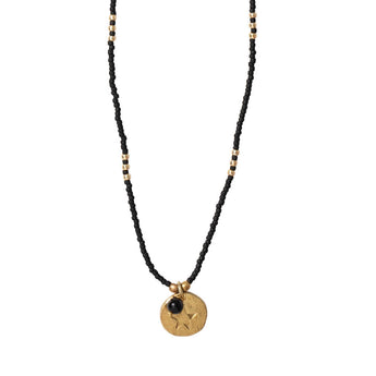 Découvrez le Collier Timeless, une création artisanale signée A Beautiful Story. Ce bijou délicat associe perles de verre colorées et perles en laiton, sublimé par des pierres semi-précieuses et un petit médaillon doré plaqué. Un accessoire élégant qui apporte une touche de raffinement et de protection à votre style quotidien.