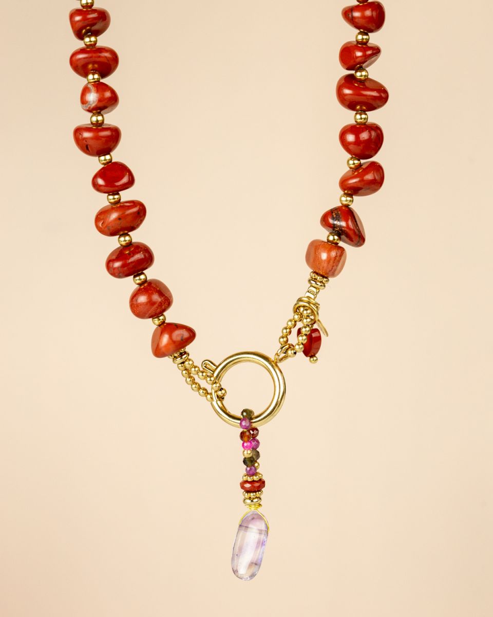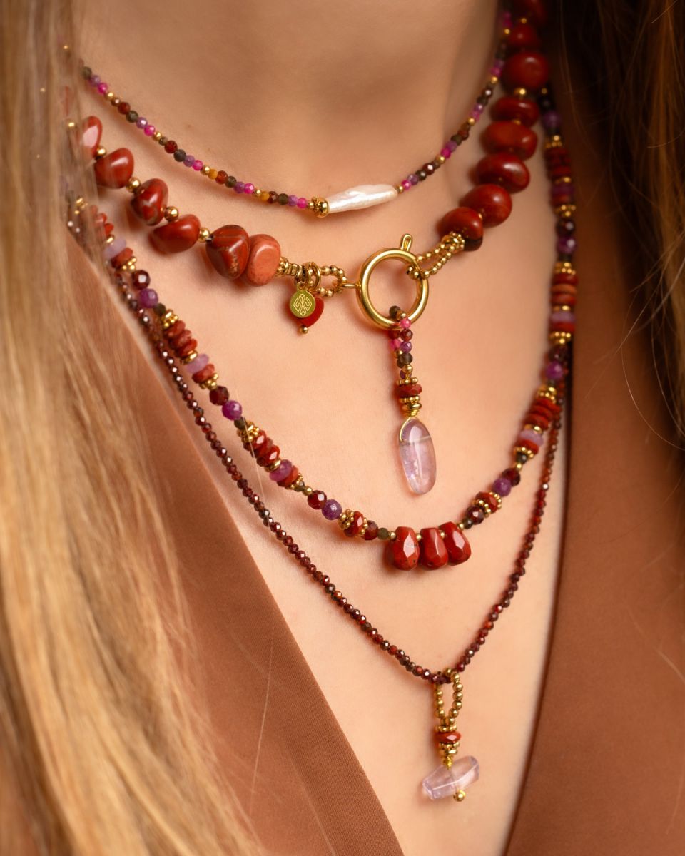 Le collier Amis allie audace et délicatesse dans un jeu de contrastes harmonieux. Ses perles, sublimées par un pendentif goutte, révèlent une féminité douce et rayonnante. Un bijou fort et élégant, idéal pour illuminer vos tenues avec une touche d’éclat et de tendresse.