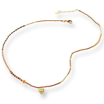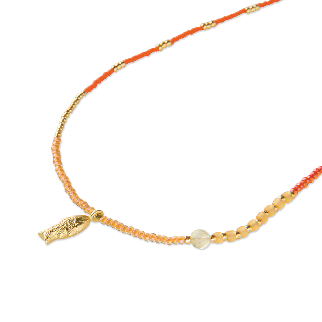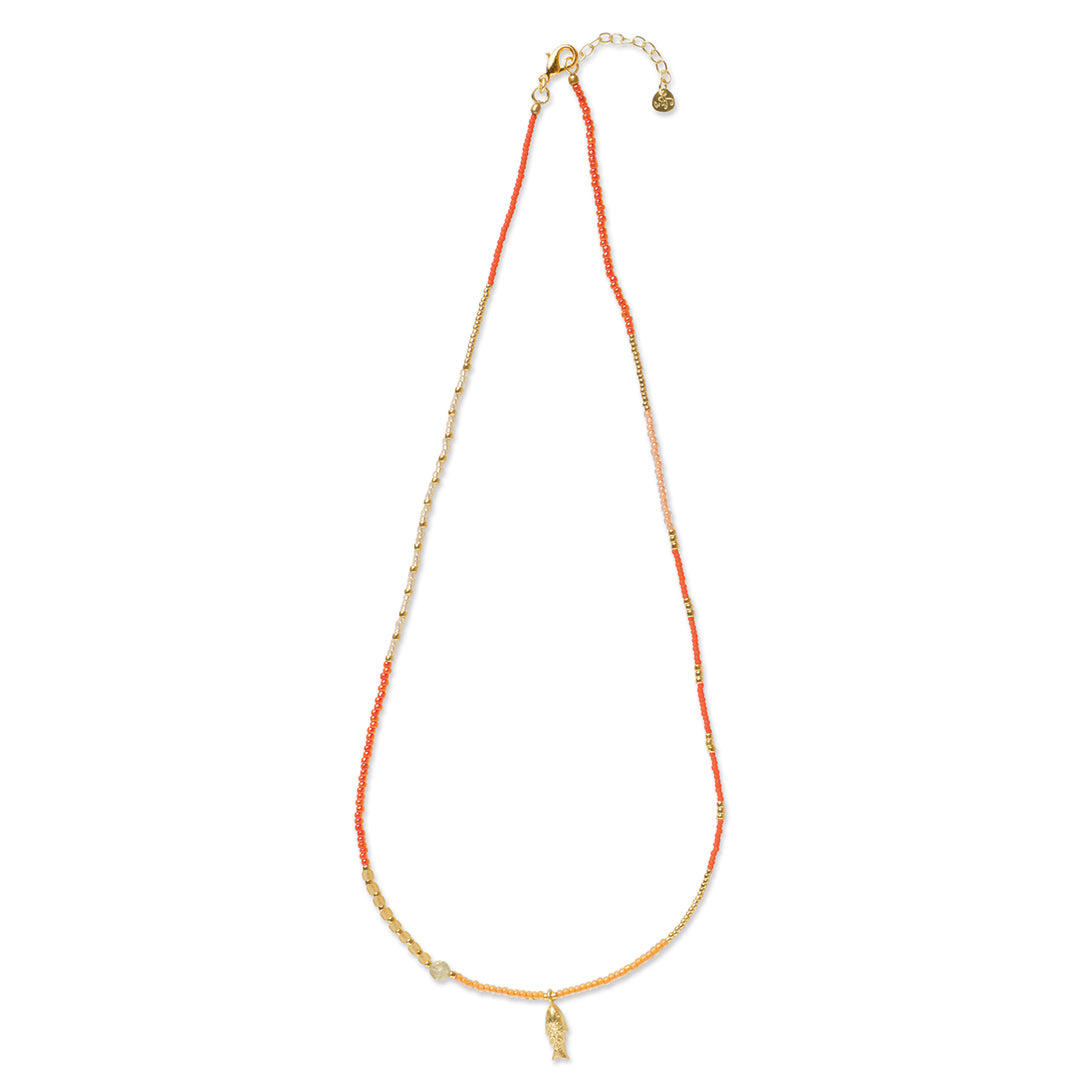 Apportez une touche de joie avec le Collier Adventurous coloris divers. Ce collier doré met en valeur un pendentif vintage, des perles de verre colorées et des pierres naturelles. Idéal pour être porté seul ou associé à d’autres bijoux de notre collection, il vous accompagne avec élégance et soutien tout au long de votre parcours.