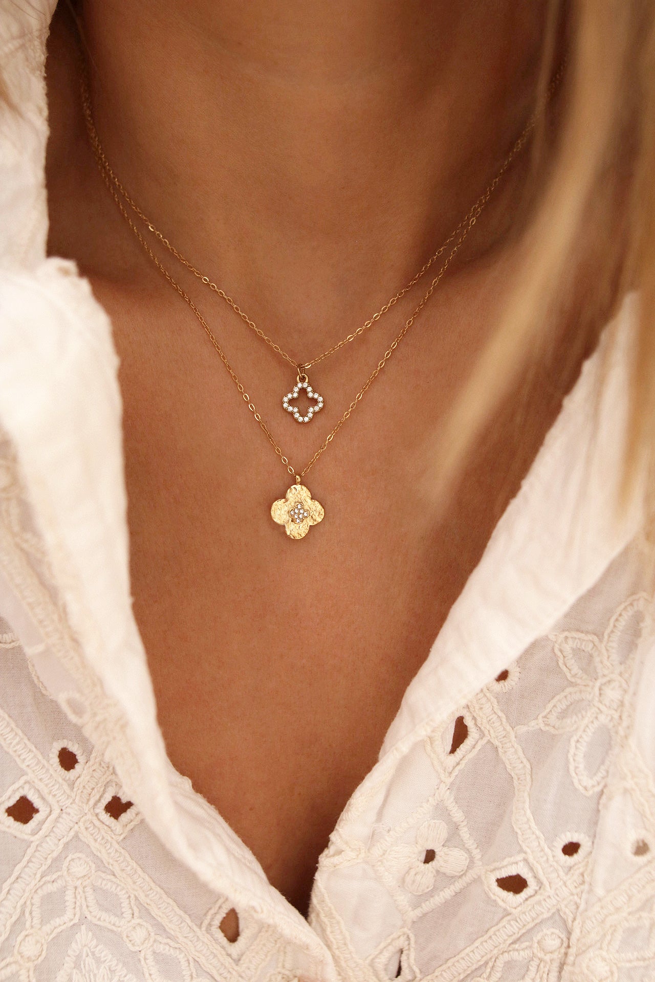 Le collier Cléa séduit par son pendentif délicatement orné de cristaux scintillants, formant un motif raffiné et intemporel. Monté sur une fine chaîne dorée, il apporte une touche d’élégance subtile à toutes vos tenues, du quotidien aux grandes occasions.