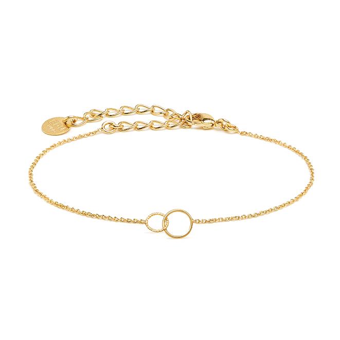 Charmant bracelet chaîne doré à l'or fin. Deux anneaux entremêlés à offrir ou pour se faire plaisir !