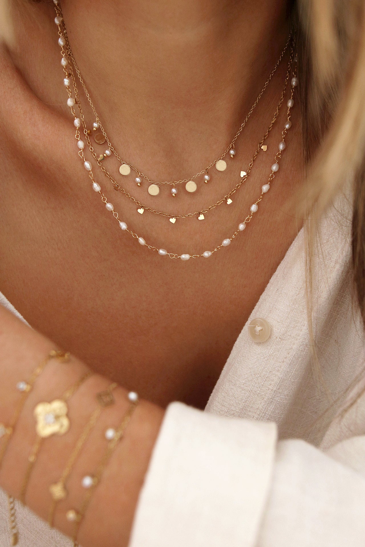 Le collier Isaline séduit par sa délicatesse et son charme intemporel. Sa fine chaîne dorée est ornée de petits pendentifs en forme de cœur, apportant une touche de douceur et de romantisme à toutes vos tenues.