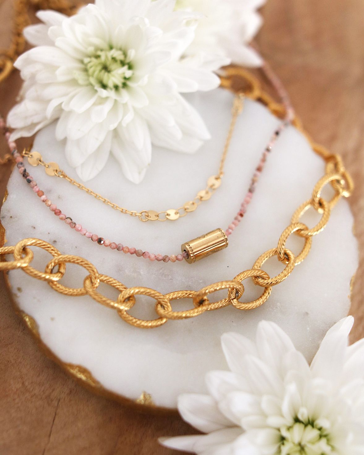 Une marque dans l'air du temps, des bijoux intemporels, toujours en plaqué or, qui résistent à la vie. Une collection pensée pour être accumulée. A offrir ou pour se faire plaisir.