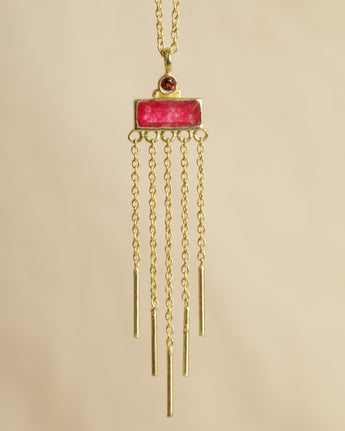 Le collier Lotte séduit par son allure à la fois audacieuse et raffinée. Son pendentif, orné d’une pierre éclatante, se prolonge en une cascade de fines chaînes dorées qui dansent à la lumière. Chaque mouvement révèle l’éclat subtil de ses reflets, rappelant la grâce d’un coucher de soleil sur l’or. À la fois bohème et sophistiqué, ce bijou capte l’attention et illumine le décolleté d’une féminité libre et rayonnante.