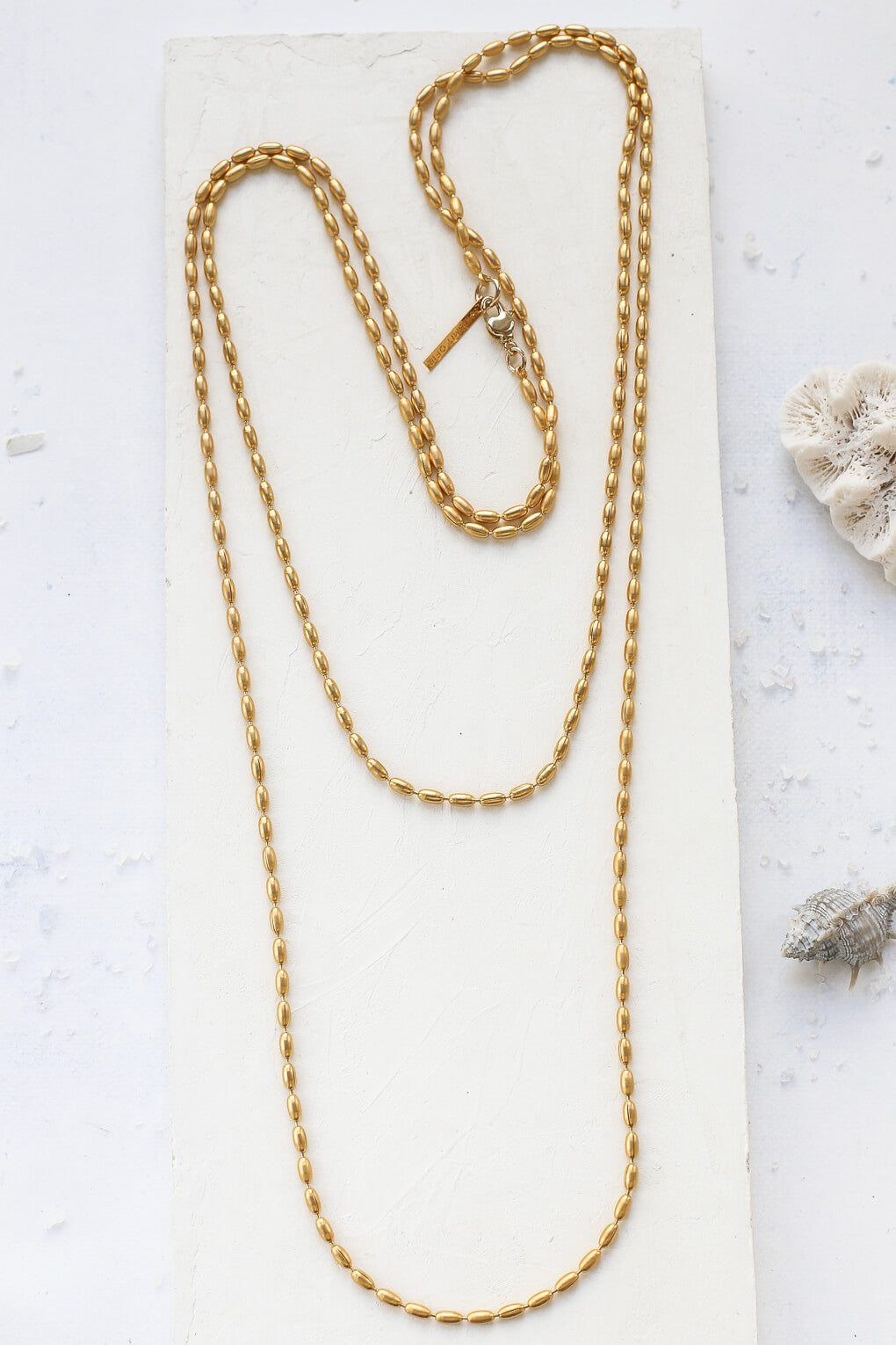 Un collier polyvalent qui peut être porté de différentes manières - comme un double sautoir, un triple collier ou un bracelet. Un de ces bijoux que vous savez que vous porterez encore et encore (et encore)...