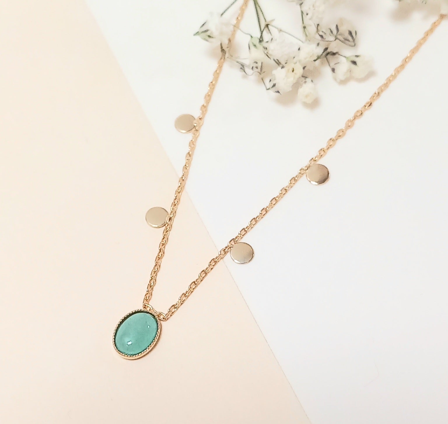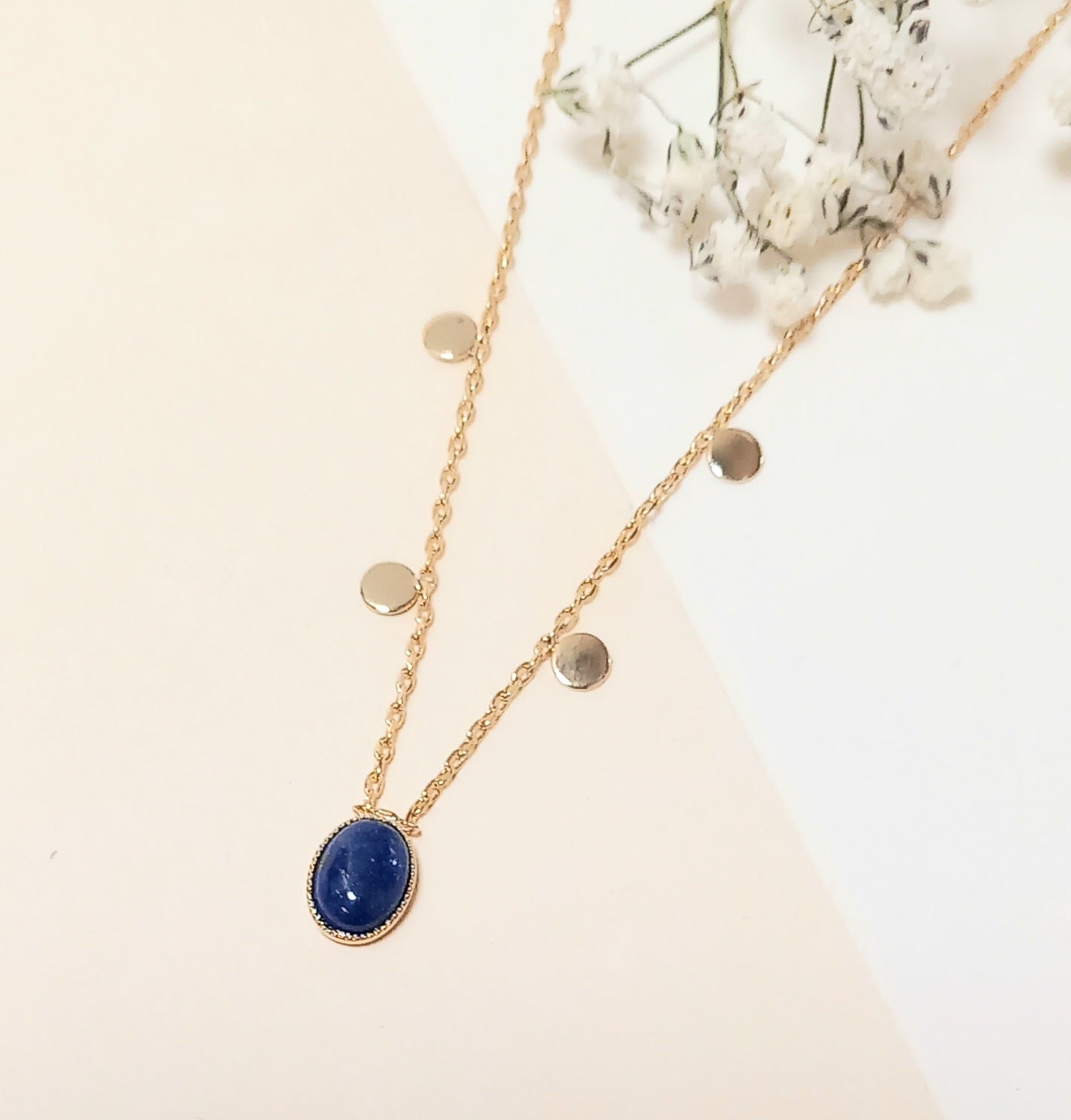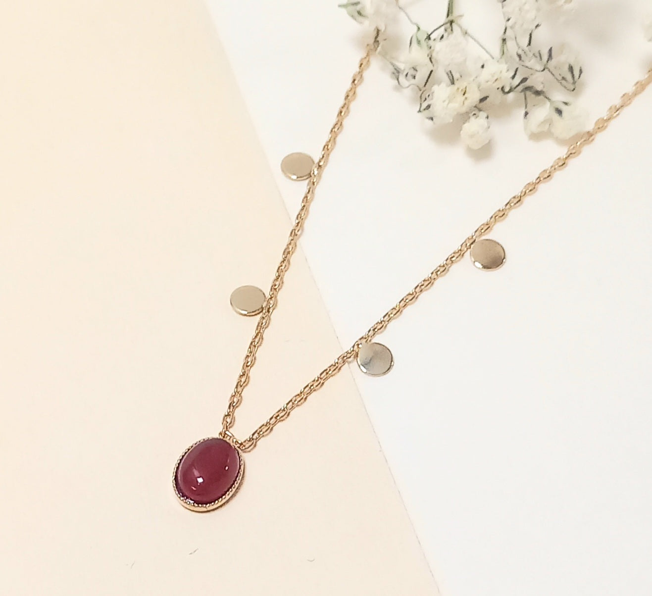 Dimensions: Pierre ovale 10 mm x 7 mm / Chaîne 45 cm + 3 cm de rallonge.