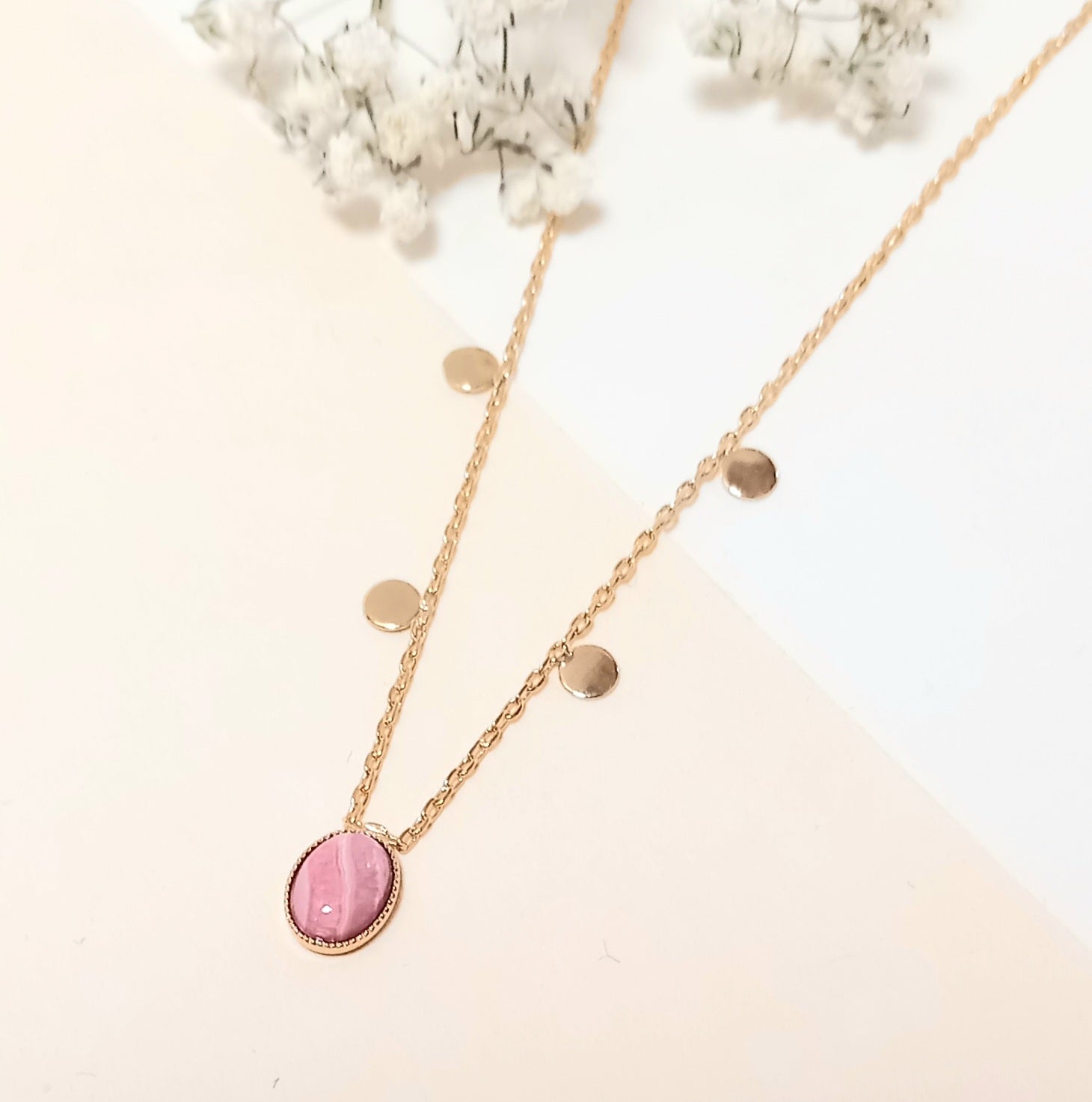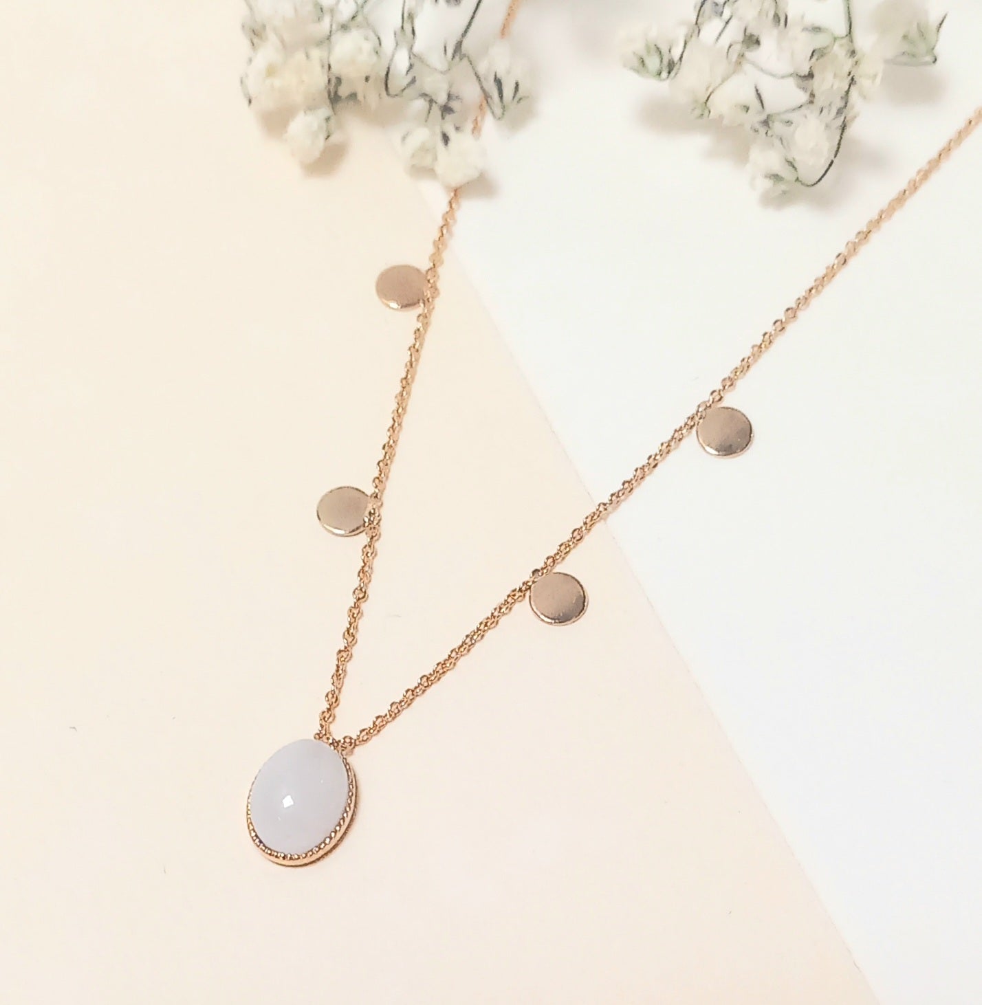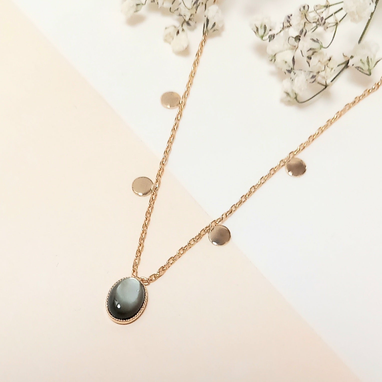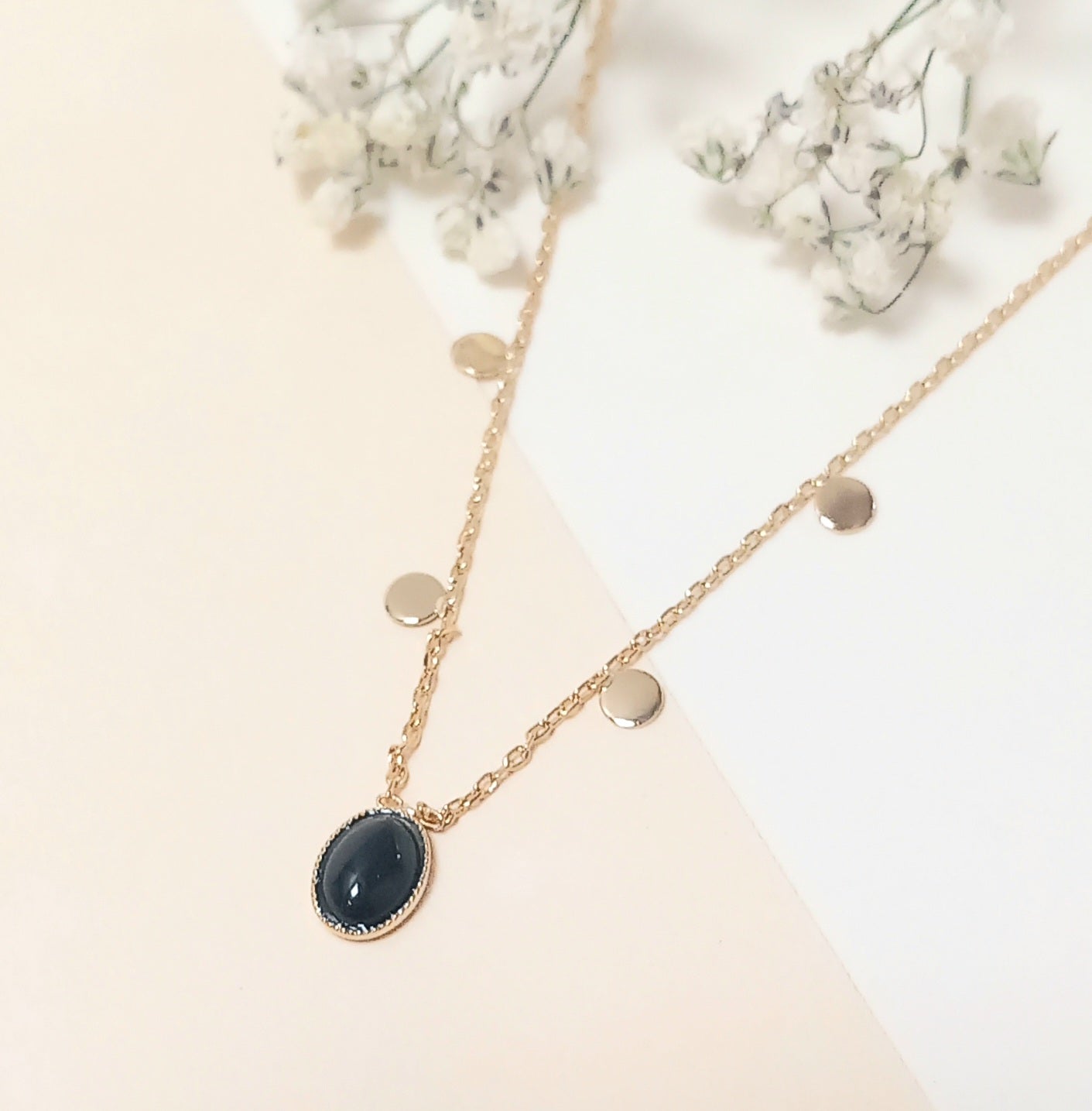 Dimensions: Pierre ovale 10 mm x 7 mm / Chaîne 45 cm + 3 cm de rallonge.