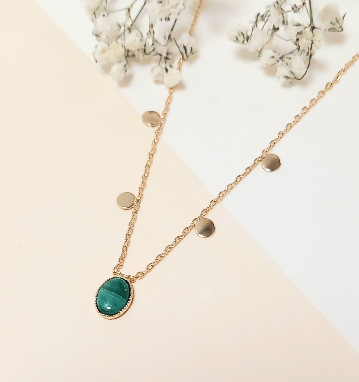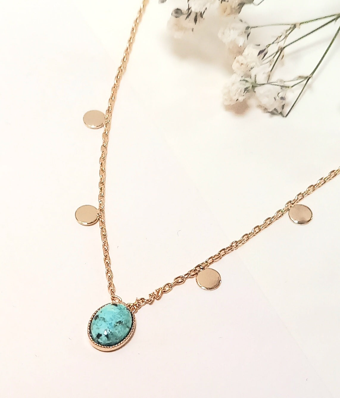 Collier chaîne doré et raffiné avec pampilles et une pierre semi-précieuse.. Idéal pour sublimer chaque femme avec un bijoux.